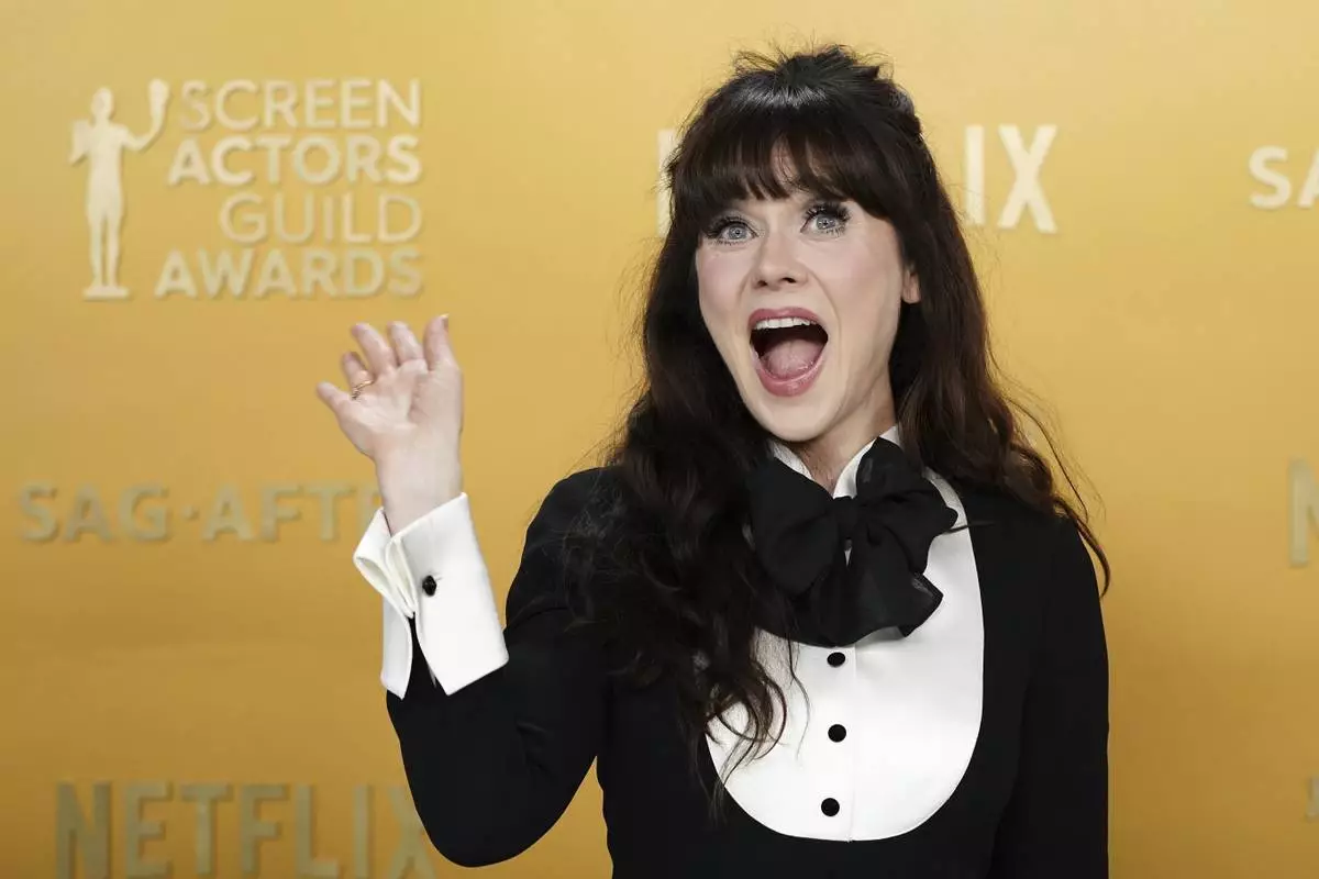 Zooey Deschanel arrives at the 31st annual Screen Actors Guild Awards on Sunday, Feb. 23, 2025, at the Shrine Auditorium in Los Angeles. (Photo by Jordan Strauss/Invision/AP)