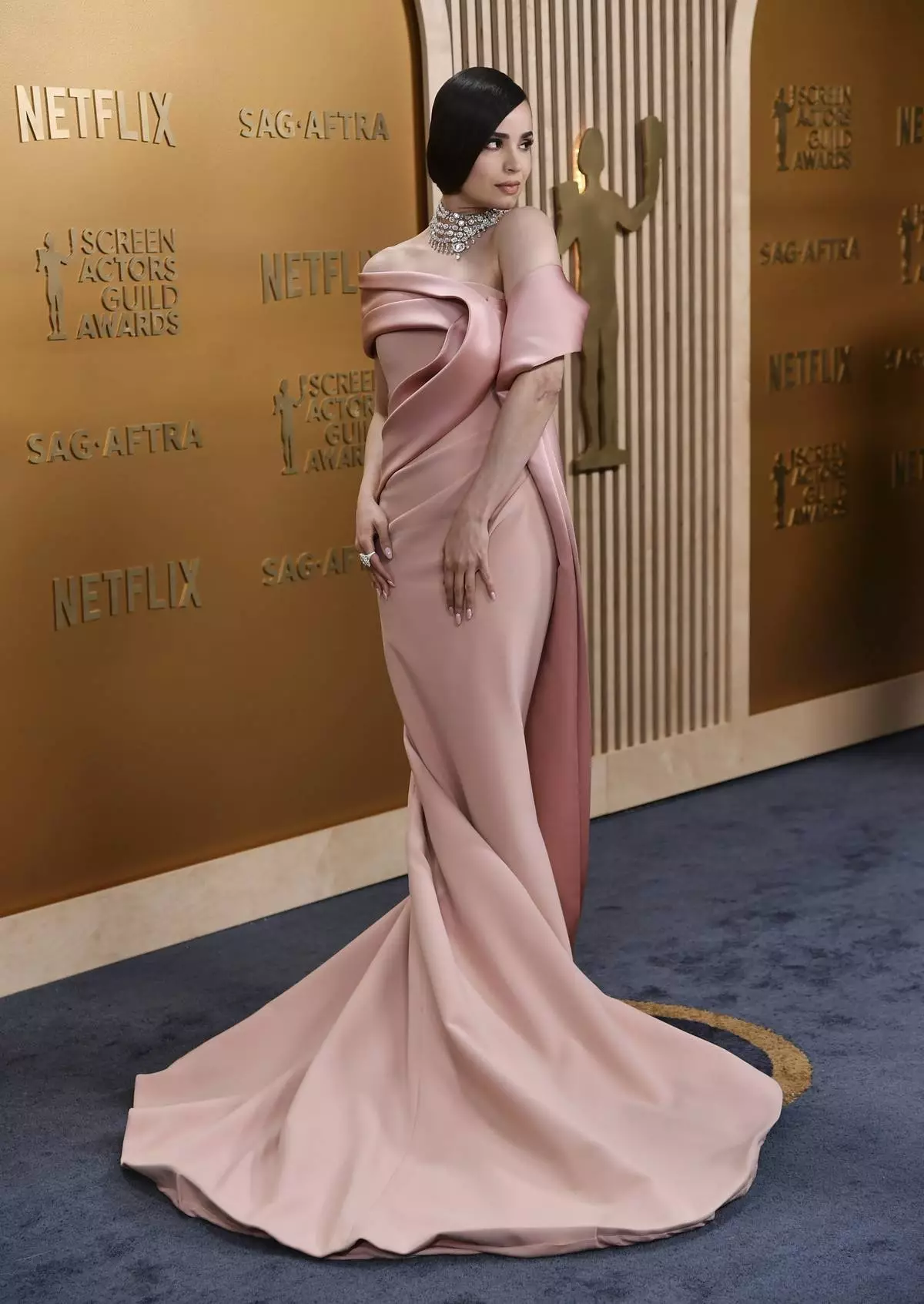 Sofia Carson arrives at the 31st annual Screen Actors Guild Awards on Sunday, Feb. 23, 2025, at the Shrine Auditorium in Los Angeles. (Photo by Richard Shotwell/Invision/AP)