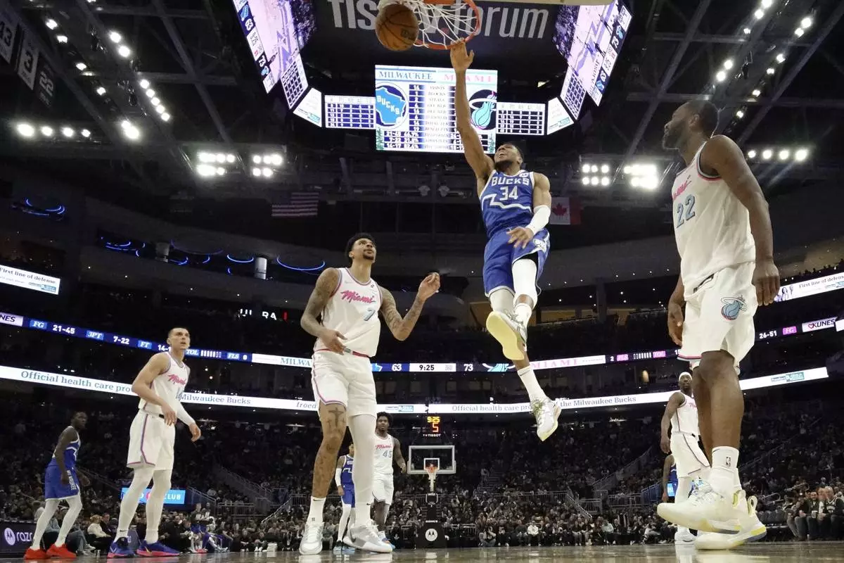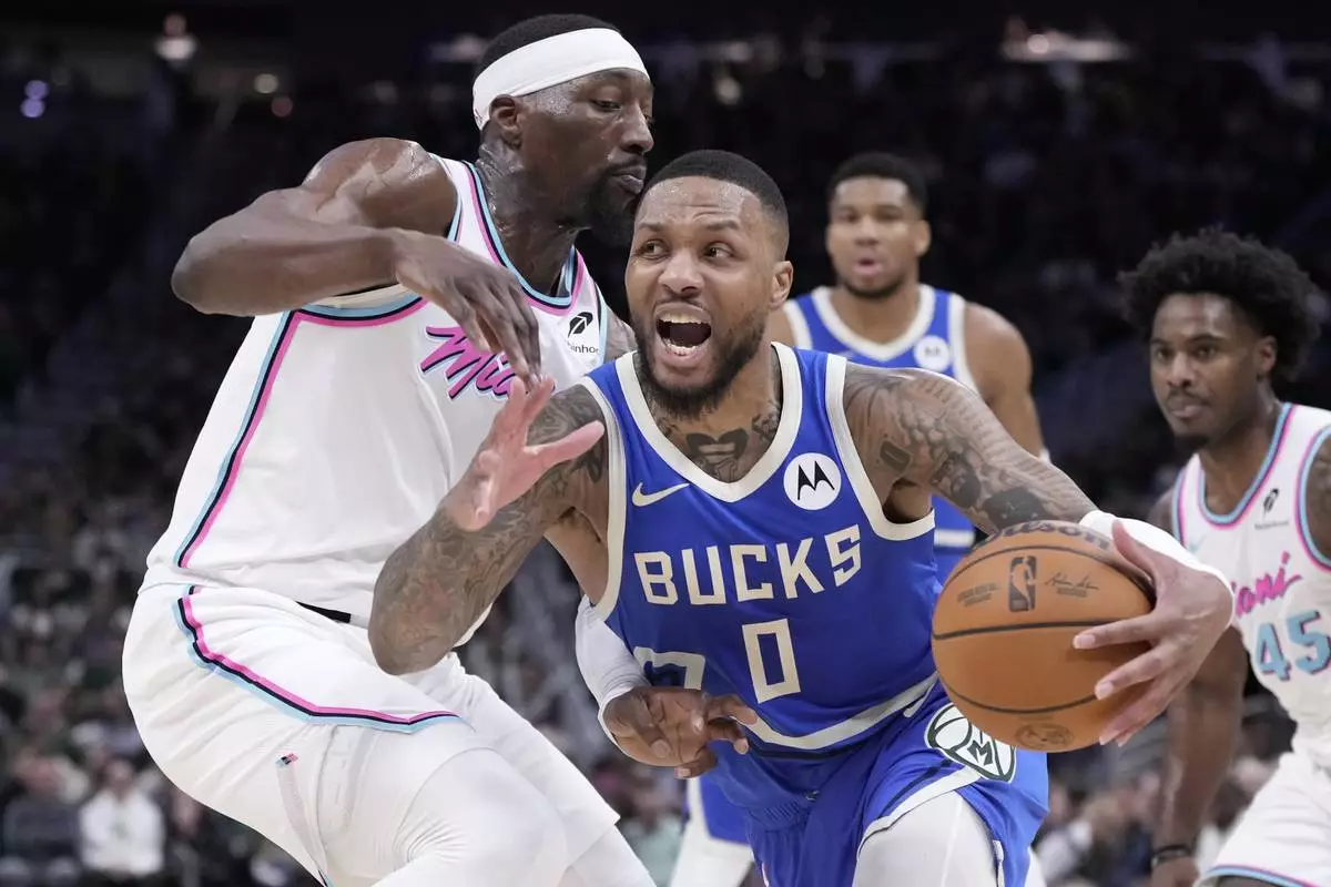 MILWAUKEE (AP) — Damian Lillard scored 28 points and Giannis Antetokounmpo had 23 points and 16 rebounds as the Milwaukee Bucks used a strong fourth quarter to rally past the Miami Heat 120-113 on Sunday for their fourth consecutive victory.