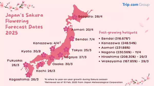 SINGAPORE, Feb. 24, 2025 /PRNewswire/ -- As cherry blossoms begin to bloom as March approaches, travellers seeking a less-crowded sakura spotting experience are flocking to lesser-known cities in Japan to get their flower fix. While the Japanese cherry blossom season remains a top draw, this year, bookings for off-the-beaten-path and alternative locations beyond Japan are seeing significant growth, reflecting the rising demand for more peaceful and unique experiences in the heart of spring.