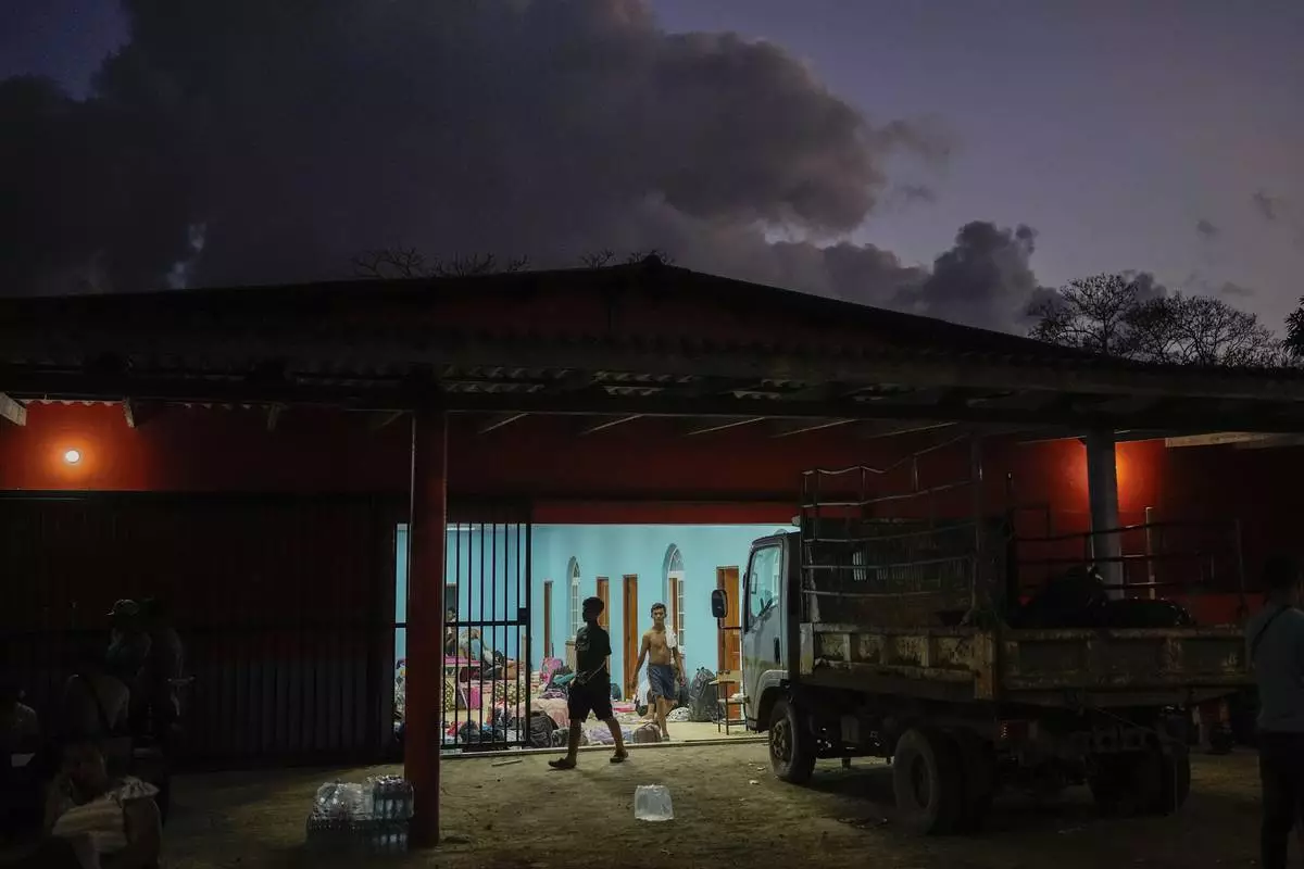 Migrants spend the night in a shelter in Palenque, Panama, Wednesday, Feb. 26, 2025. The migrants are returning from southern Mexico after giving up on reaching the U.S., a reverse flow triggered by the Trump administration's immigration crackdown. (AP Photo/Matias Delacroix)