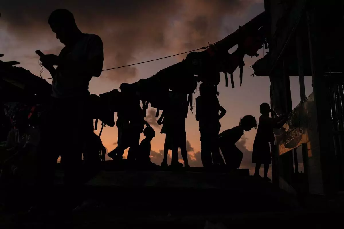 Migrants wind down during sunset on Gardi Sugdub Island, on Panama's Caribbean coast, Sunday, Feb. 23, 2025, where they will overnight before attempting to board boats to Colombia the following day after turning back from southern Mexico, abandoning hopes of reaching the U.S. amid President Trump's crackdown on migration. (AP Photo/Matias Delacroix)