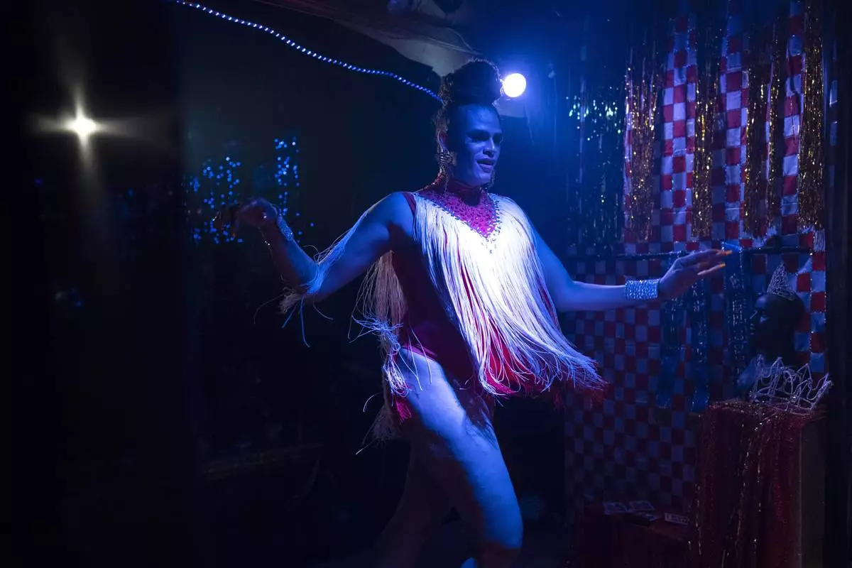 Transgender woman Alessandra Salazary, 31, hosts a Carnival contest in Rio de Janeiro, Sunday, Feb. 16, 2025. (AP Photo/Silvia Izquierdo