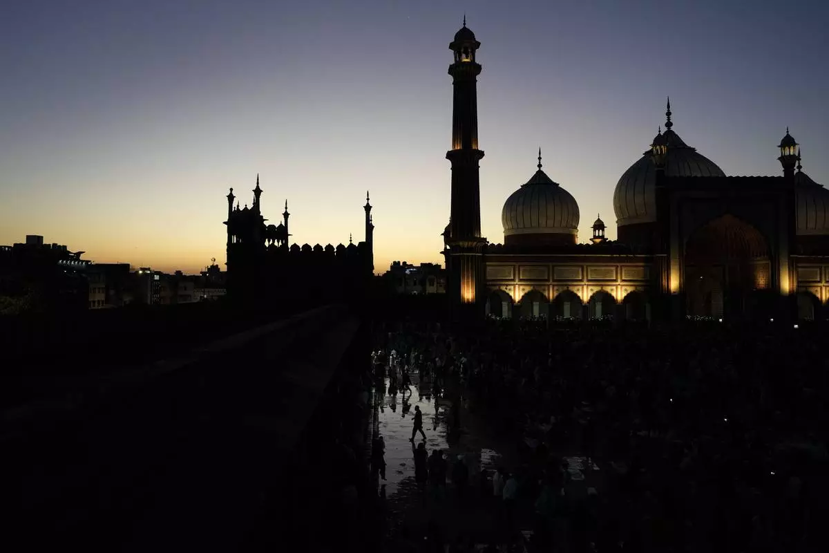 Devout Muslims leave after breaking their fast at sundown on the first day of Ramadan at Jama Masjid in New Delhi,India, Sunday, March, 2, 2025. (AP Photo/Manish Swarup)