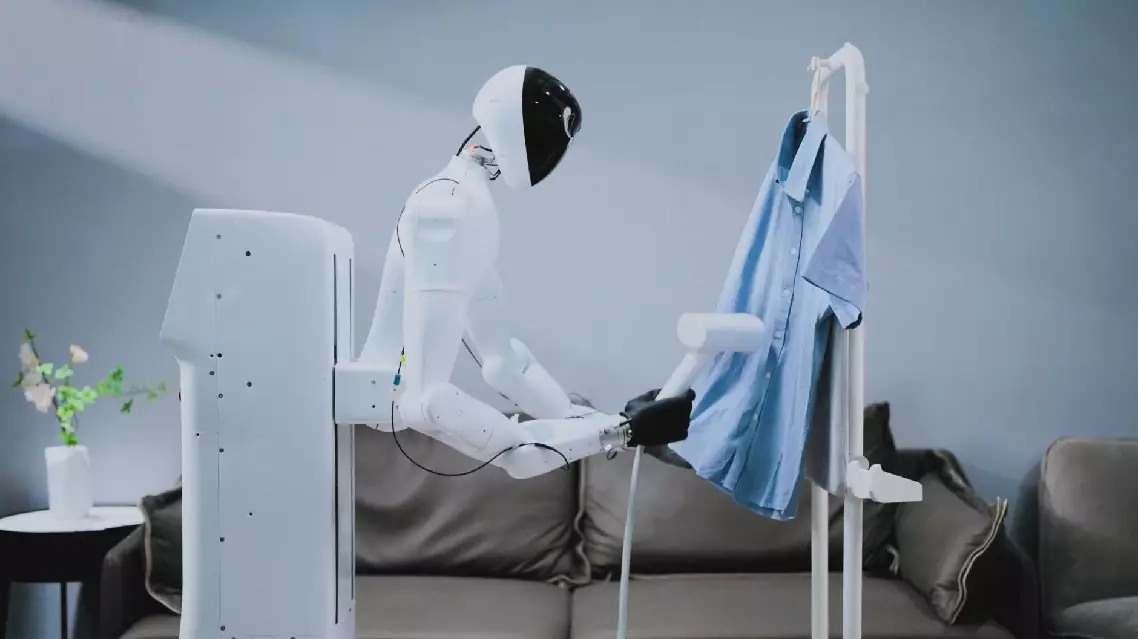 The video features robots performing tasks of doing household chores, like ironing and cleaning toilets and performing more advanced duties in industrial settings, like packaging goods and manufacturing products. It highlights their potential to transform both everyday life and industrial processes, offering a glimpse into the future of robotics.