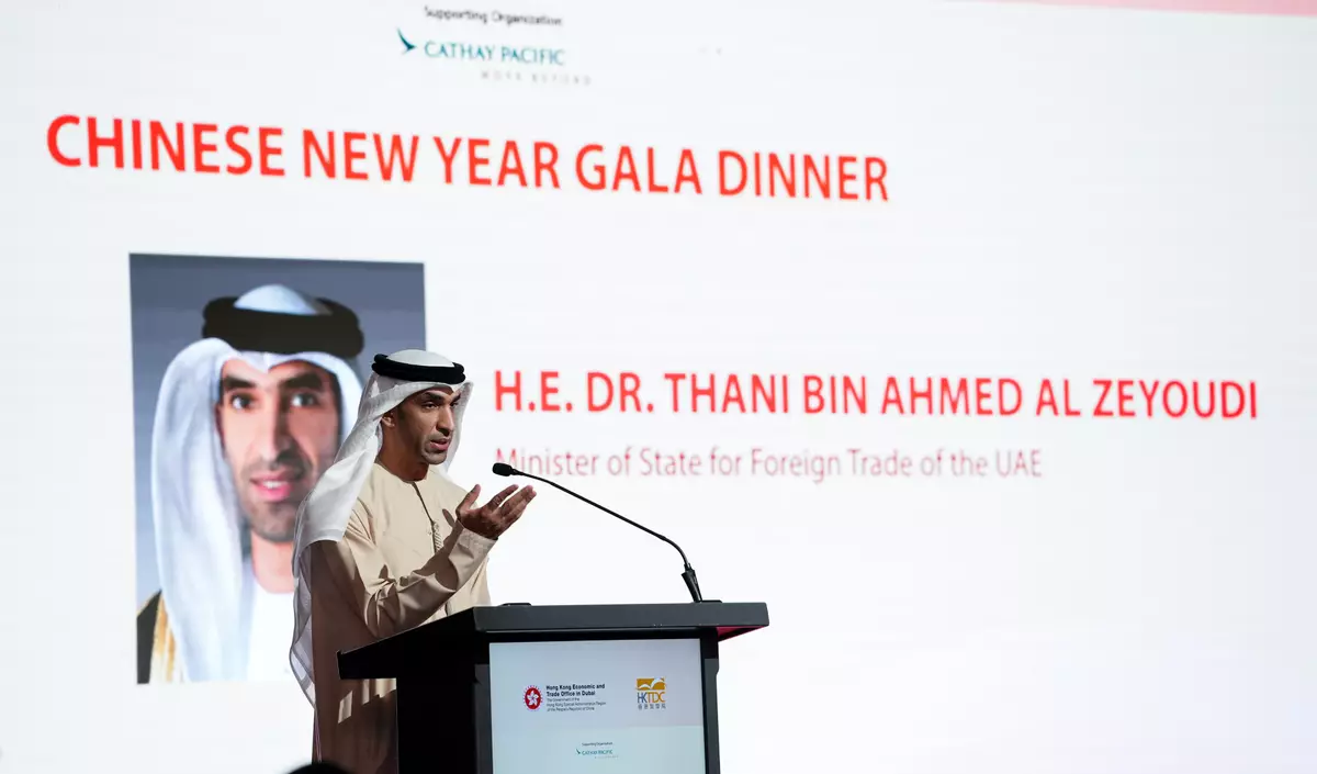 A total of over 450 guests from the government, business and cultural sectors as well as the local Hong Kong community attended the two gala dinners. Among them were the Minister of State for Foreign Trade of the UAE, Dr Thani bin Ahmed Al Zeyoudi, the Consul-General of the People's Republic of China in Dubai, Ms Ou Boqian, and the Chairman of the Saudi Chinese Business Council, Mr Mohammed Al Ajlan.