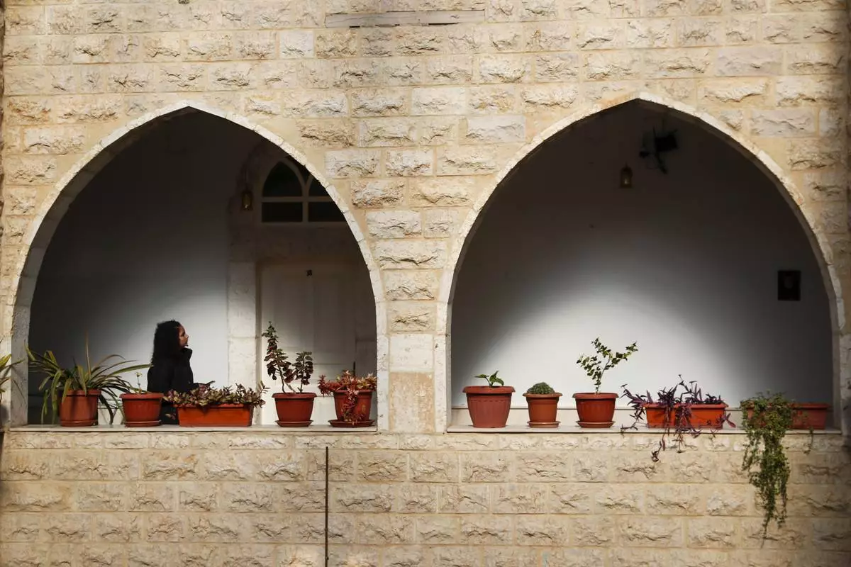 A woman walks by the Church of Saints Sergius and Bacchus after Sunday Mass in the town of Maaloula, Syria, Sunday, Jan. 12, 2025. (AP Photo/Omar Sanadiki)