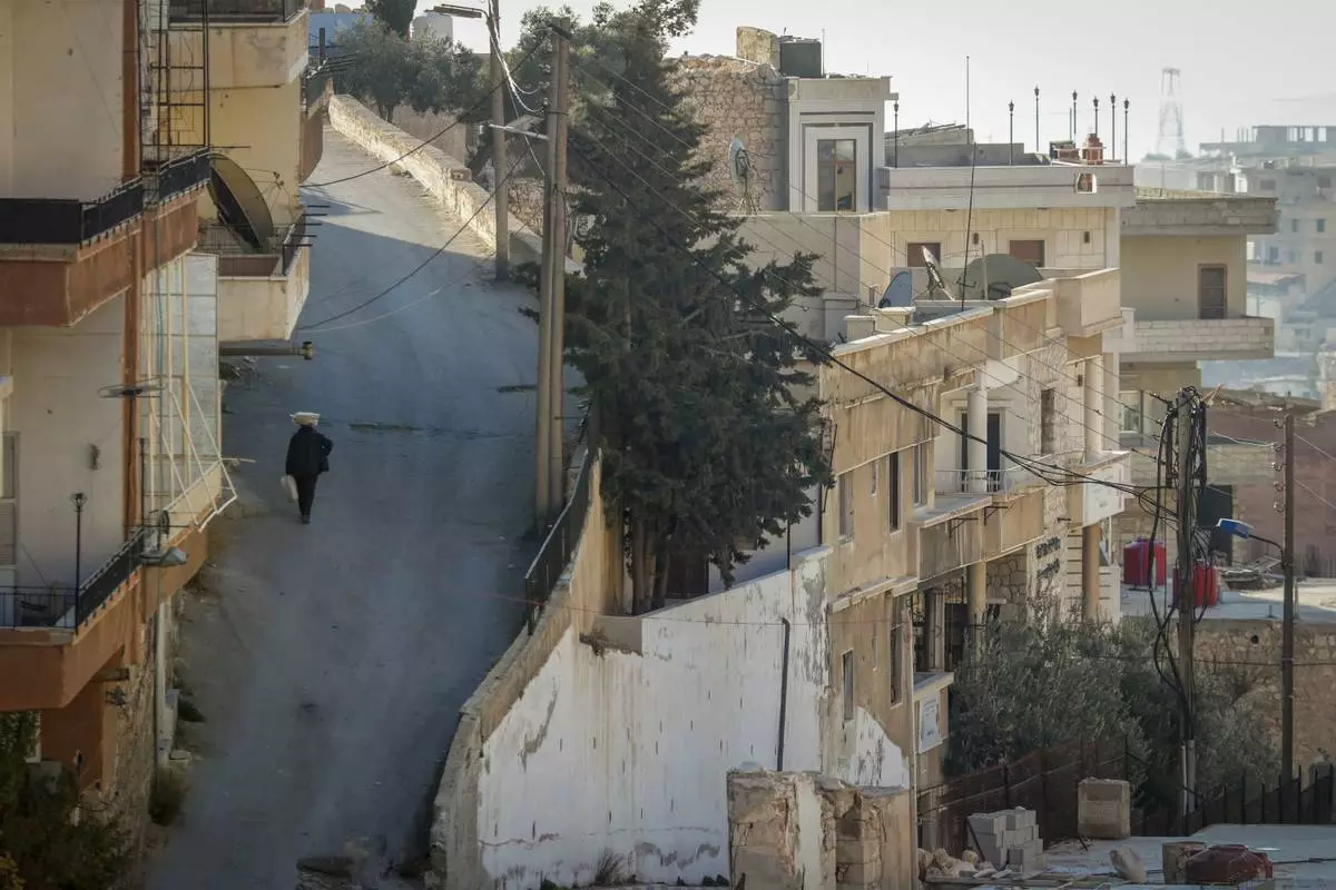 A man walks along a street in the town of Maaloula, Syria, Sunday Jan. 12, 2025. (AP Photo/Omar Sanadiki)