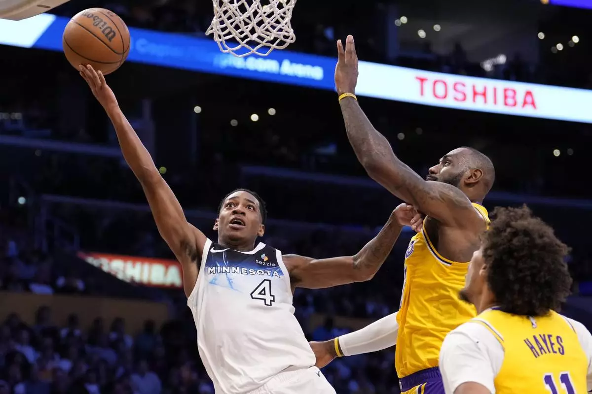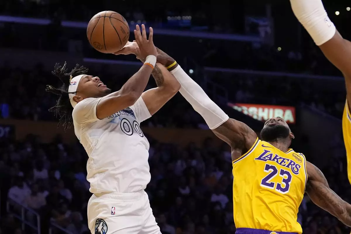 Lakers: A 3-pointer by James gave the Lakers a 47-24 lead early in the second quarter before the Timberwolves started to slowly come back.