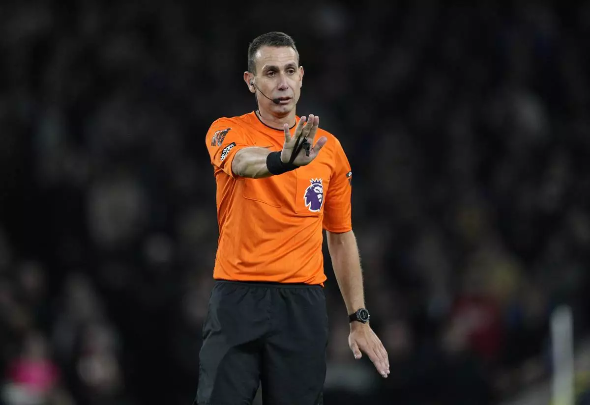 FILE - Referee David Coote reacts during the English Premier League soccer match between Tottenham Hotspur and Brighton and Brentford, at White Hart Lane Stadium in London, England, Wednesday, Jan. 31, 2024. (AP Photo/Dave Shopland, File)