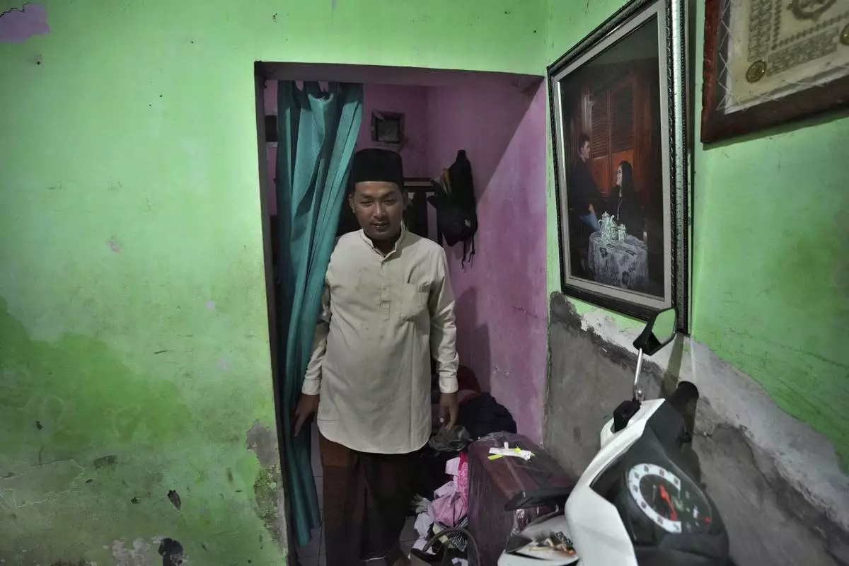 Samsul Anwar prepares for a torch parade ahead of the holy fasting month of Ramadan, in Tangerang, Indonesia, Thursday, Feb. 27, 2025. (AP Photo/Tatan Syuflana)