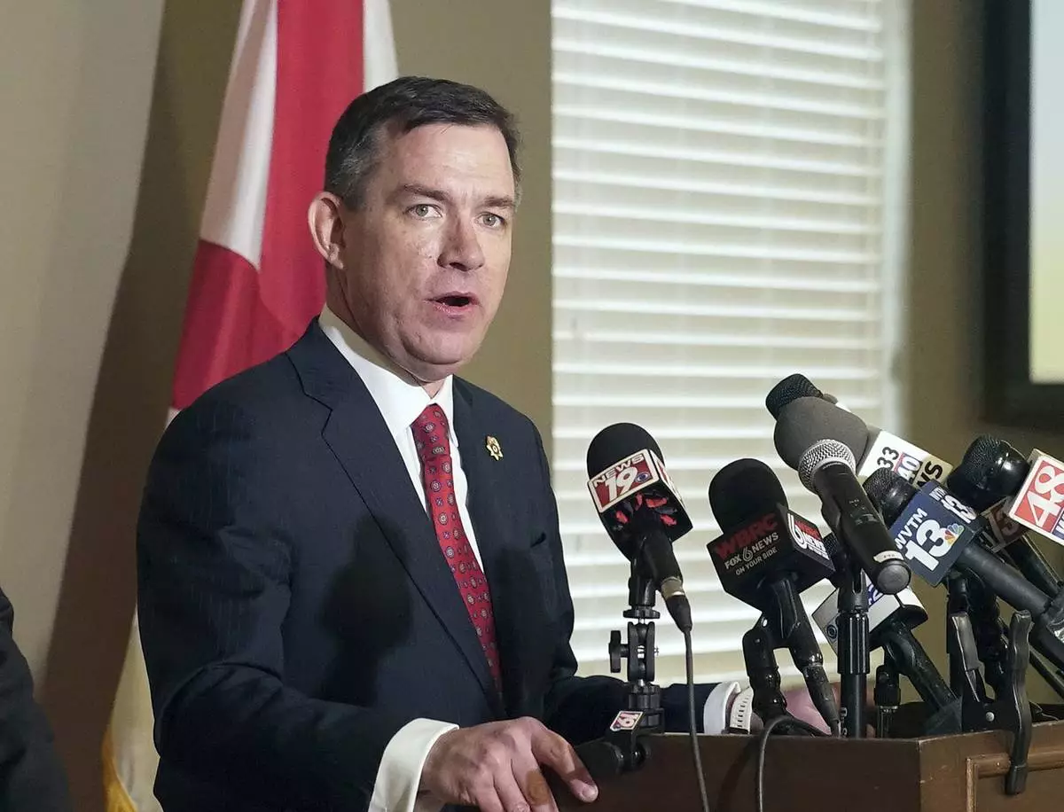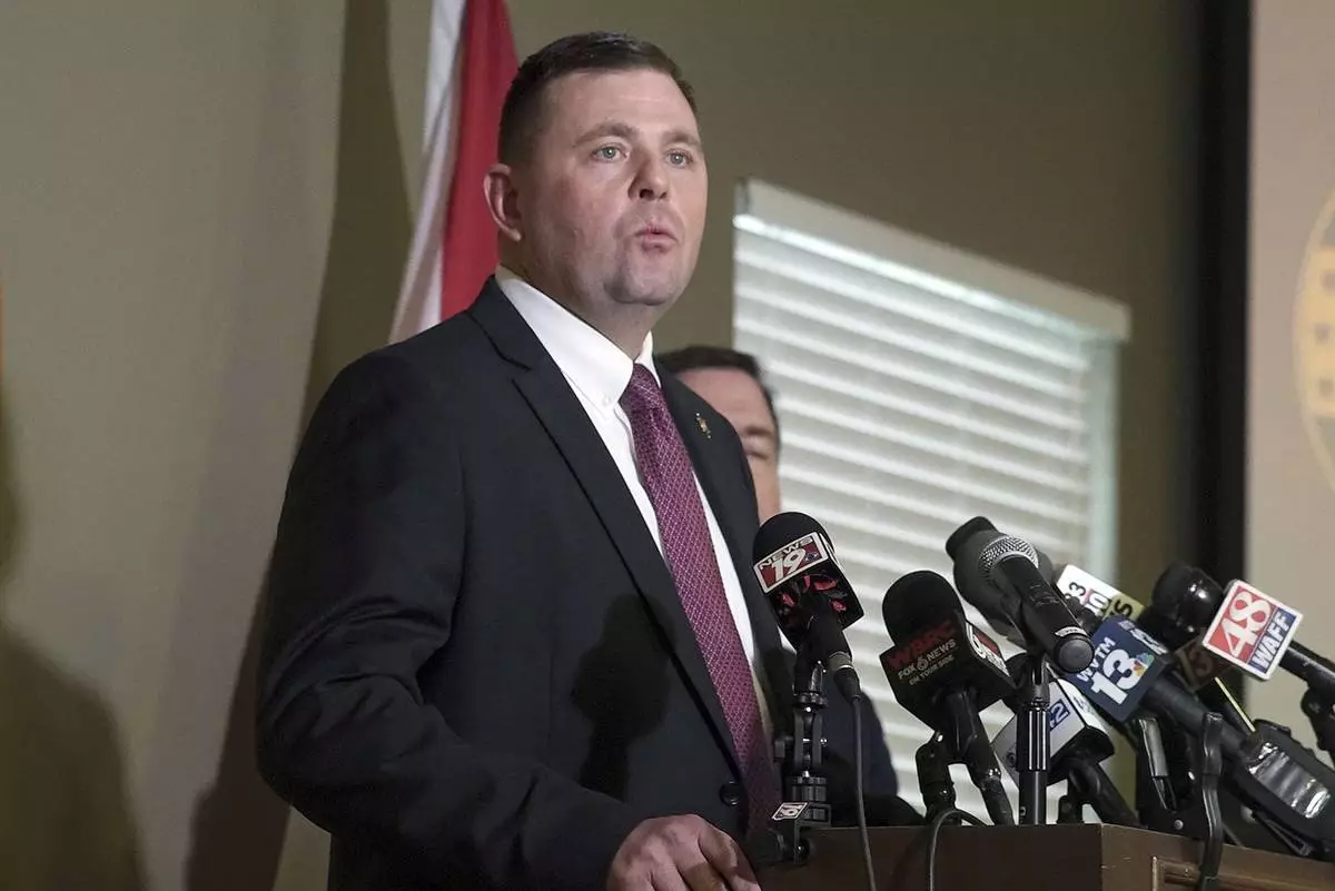 Cullman County District Attorney Champ Crocker speaks at a press conference Wednesday, Feb. 19, 2025, in Cullman, Ala. (Patrick Camp/The Cullman Times via AP)