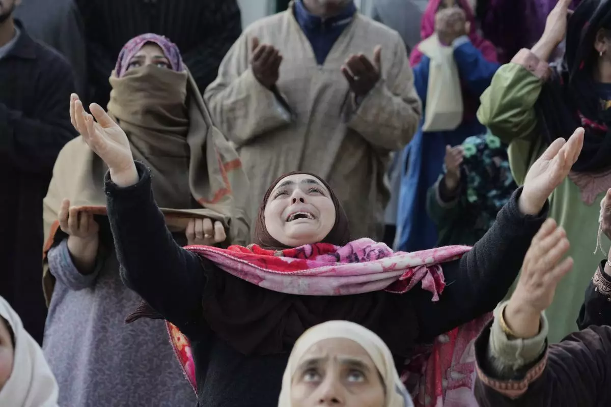 Muslim devotees pray as the head priest displays a holy relic believed to be a hair from the beard of the Prophet Muhammad during special prayers to observe the martyr day of Hazrat Ali, the fourth caliph of Islam, at Hazratbal shrine in Srinagar, Indian controlled Kashmir, Saturday, March 22, 2025 (AP Photo/Mukhtar Khan)
