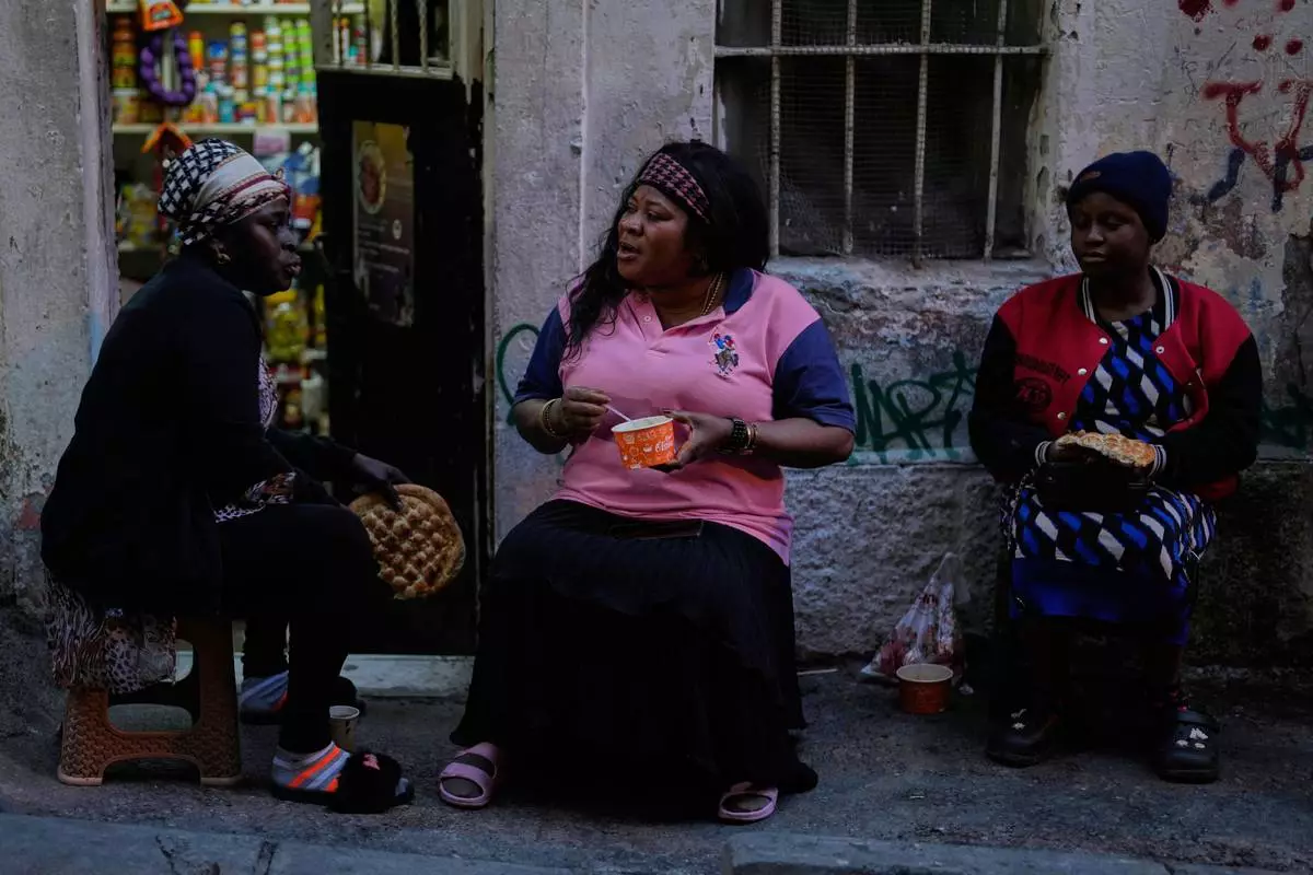 Women have their Iftar, the Ramadan fast-breaking meal, organised by the local community in a poor neighborhood in Istanbul, Saturday March 15, 2025. (AP Photo/Khalil Hamra)