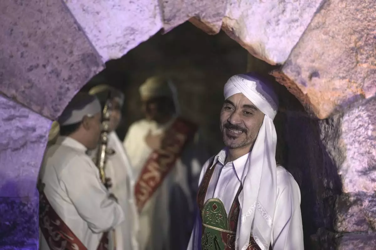 Whirling dervishes prepare to perform a religious performance to mark the holy month of Ramadan at Sultan Qansuh al-Ghuri complex in Cairo, Egypt, Wednesday, March 12, 2025. (AP Photo/Amr Nabil)