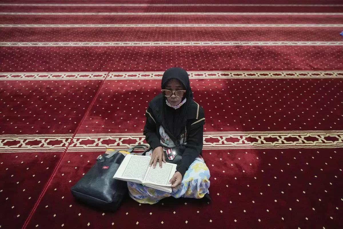 A woman reads the Quran during the holy fasting month of Ramadan at Istiqlal Mosque in Jakarta, Indonesia, Friday, March 7, 2025. (AP Photo/Tatan Syuflana)