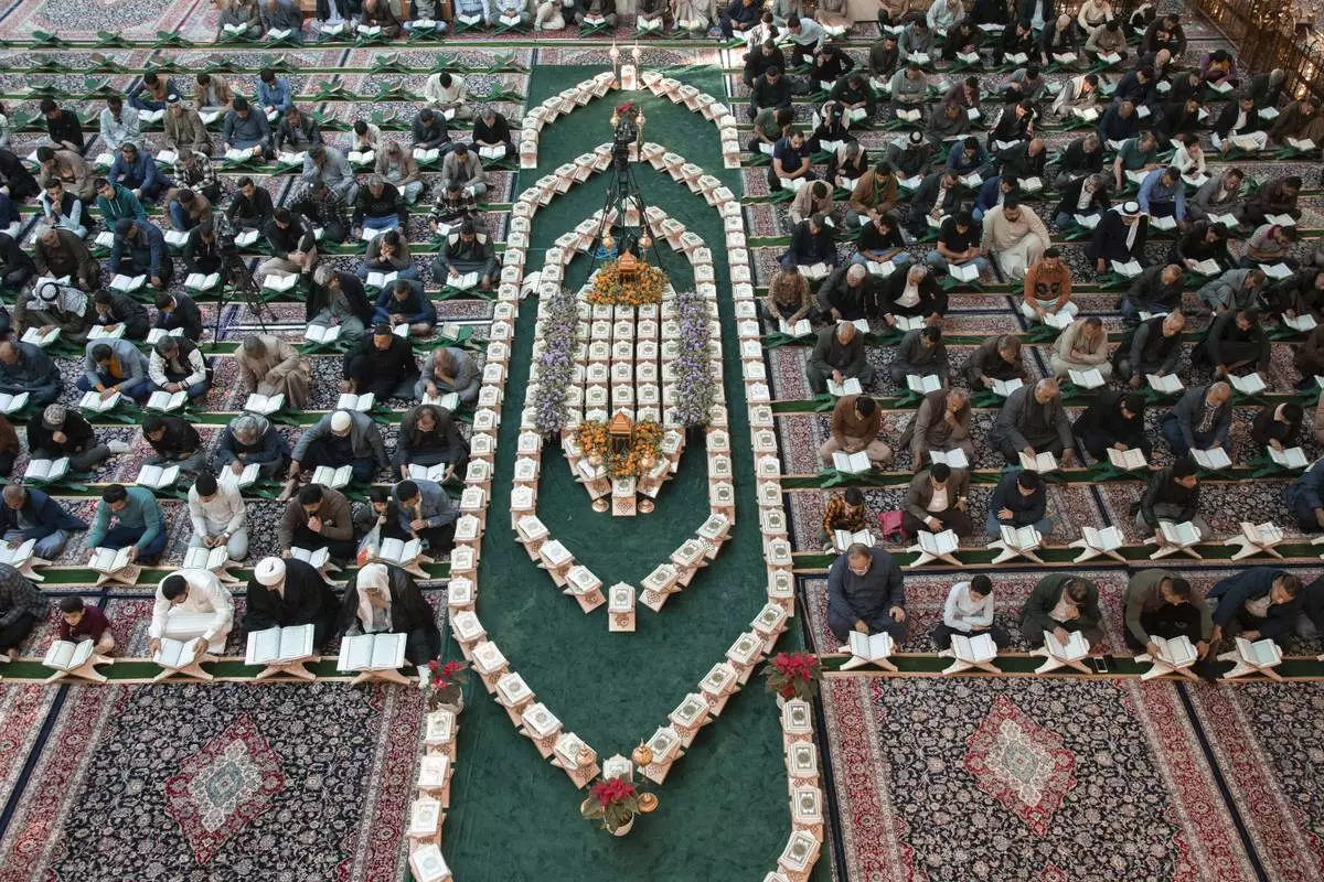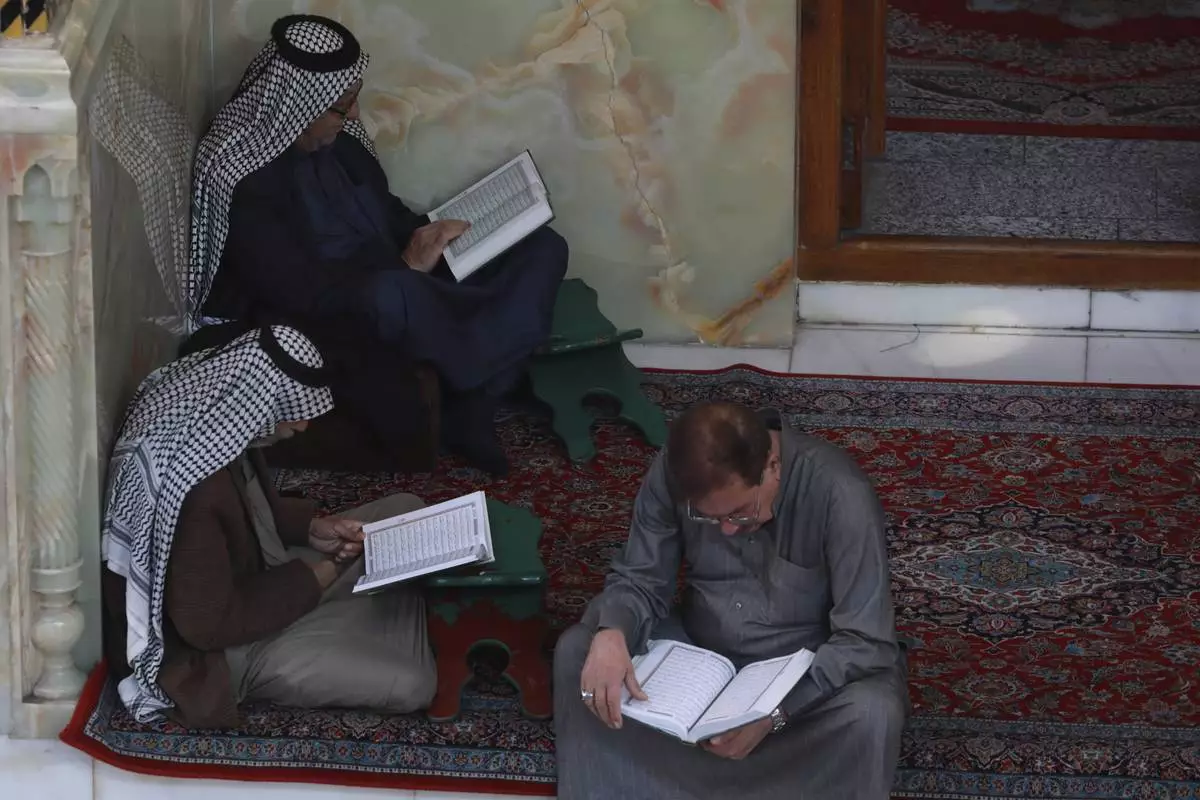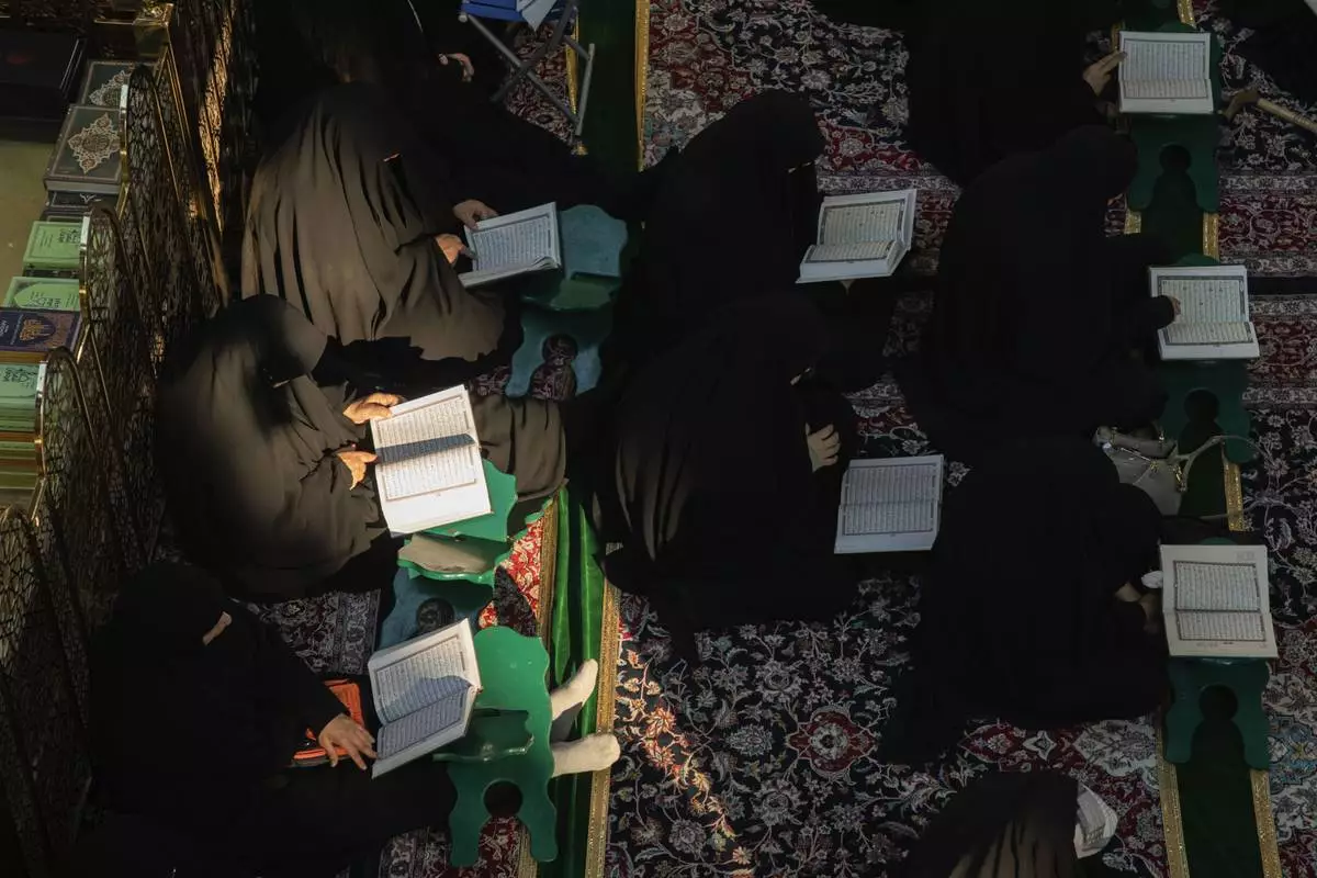 Shiites read the Quran at the holy shrine of Imam Abbas during the holy month of Ramadan in Karbala, Iraq, Wednesday, March 12, 2025. (AP Photo/Hadi Mizban)