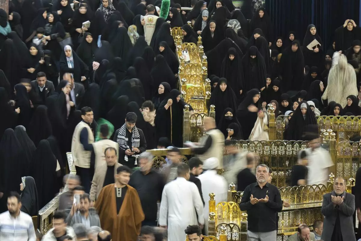 Shiite worshippers gather at the golden-domed shrine of Imam Moussa al-Kadhim, who died at the end of the eighth century, during holy fasting month of Ramadan, in Baghdad, Iraq, Tuesday, March 4, 2025. (AP Photo/Hadi Mizban)