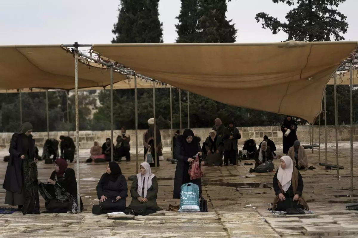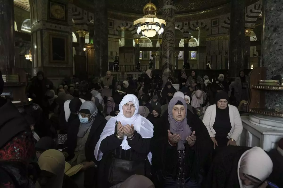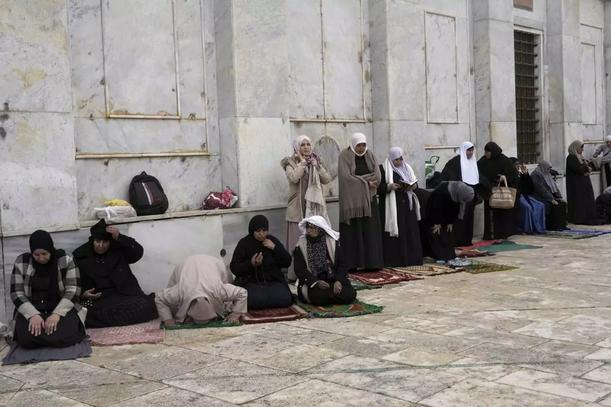 Women pray at the Al-Aqsa Mosque compound for the first Friday Prayers of the Muslim holy month of Ramadan in the Old City of Jerusalem, Friday, March 7, 2025. (AP Photo/Mahmoud Illean)