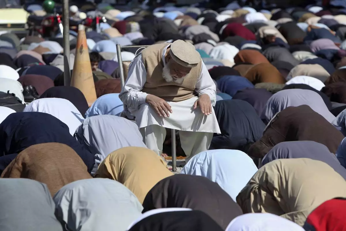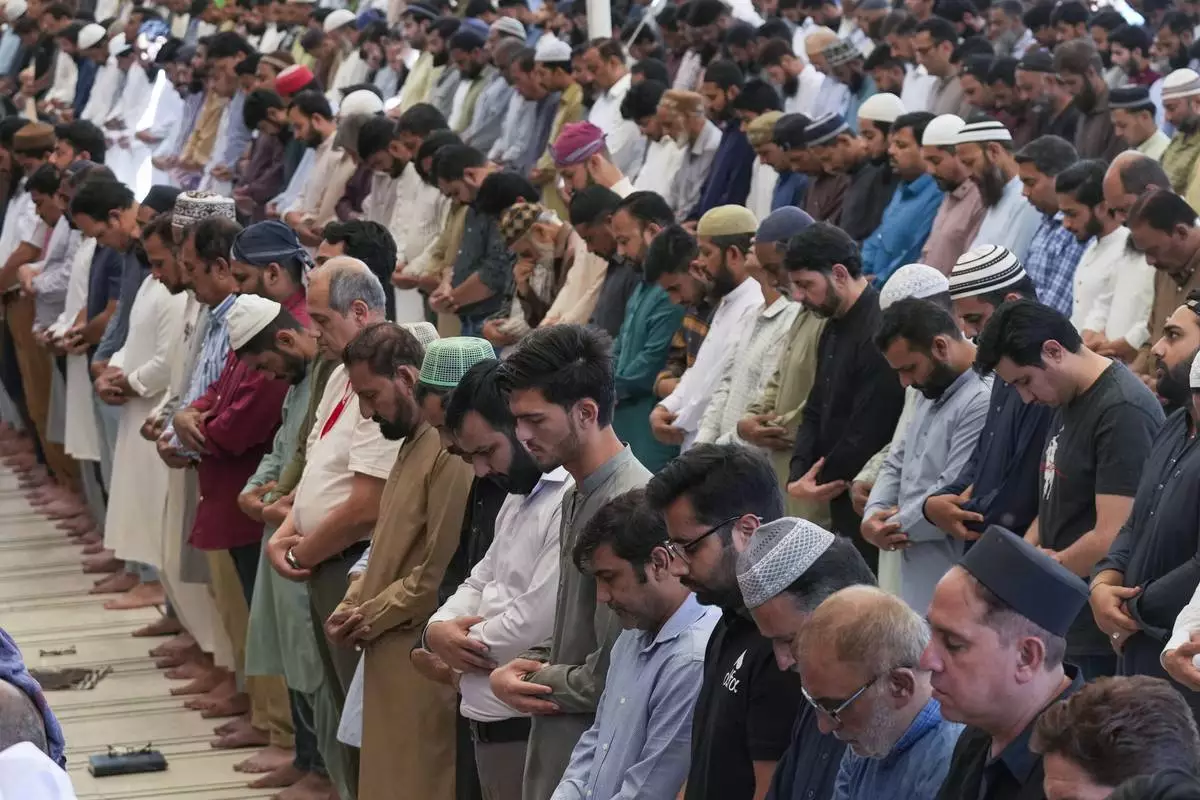 Muslims offer third Friday prayer during the Muslim holy fasting month of Ramadan, at a mosque in Rawalpindi, Pakistan, Friday, March 21, 2025. (AP Photo/Anjum Naveed)