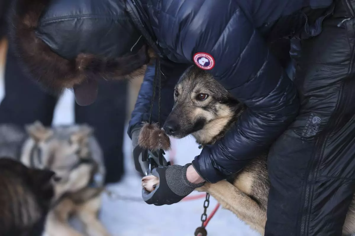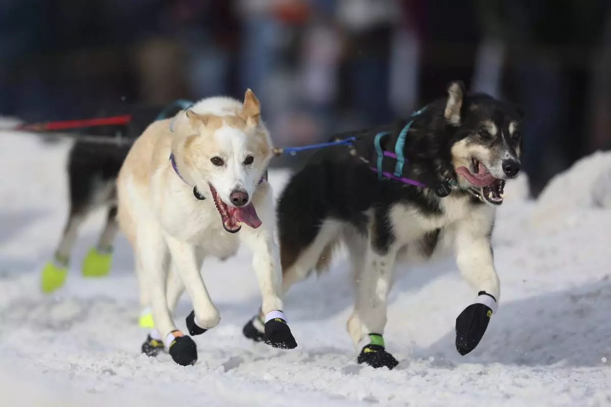 The Iditarod’s four-legged athletes will go through a total of about 100,000 booties during the race. They help protect the dogs’ paws from snow, ice and frigid temperatures.