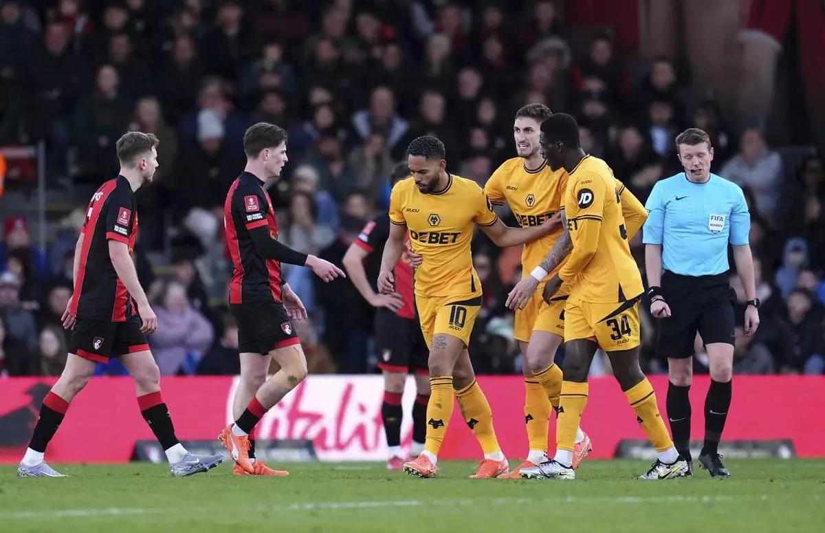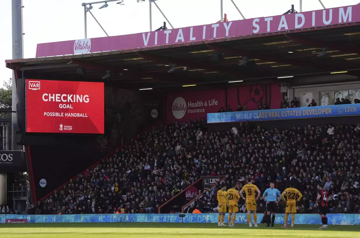 BOURNEMOUTH, England (AP) — It took more than seven minutes for the video-assistant referee to rule out a goal during Saturday’s FA Cup game between Bournemouth and Wolves despite a new semi-automatic offside system being trialed in the competition.