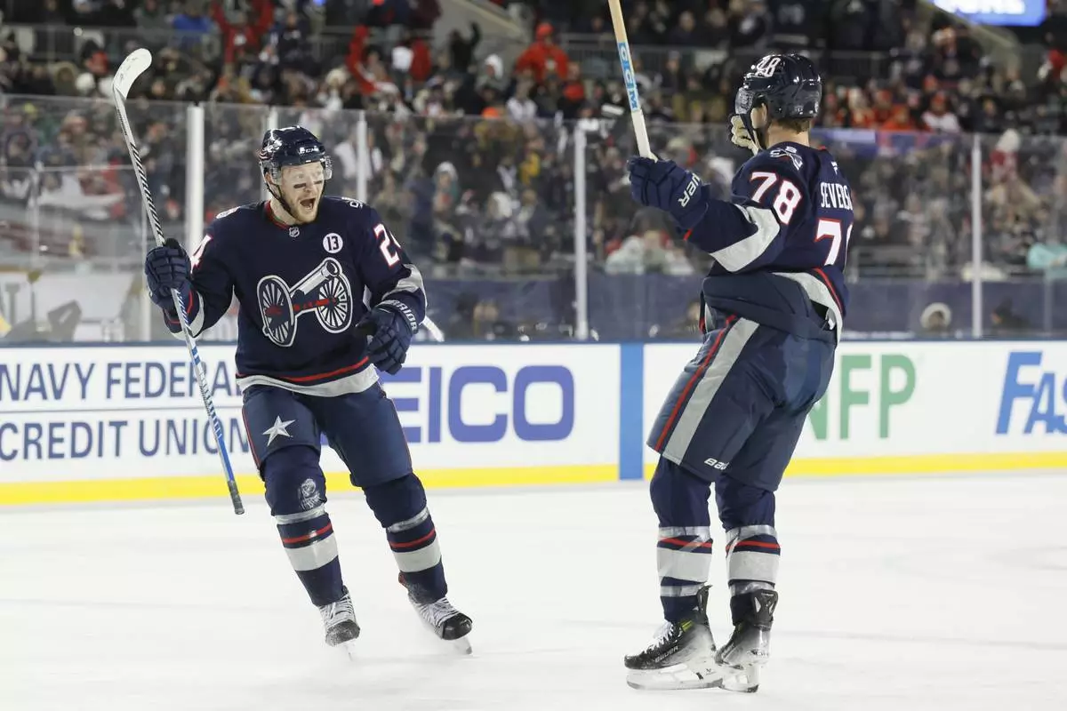 Columbus: With a game-time temperature of 29.4 degrees and gusts up to 18 mph, Columbus took time to warm up before scoring three second-period goals. The Blue Jackets stayed calm and overcame Detroit’s third-period surge.