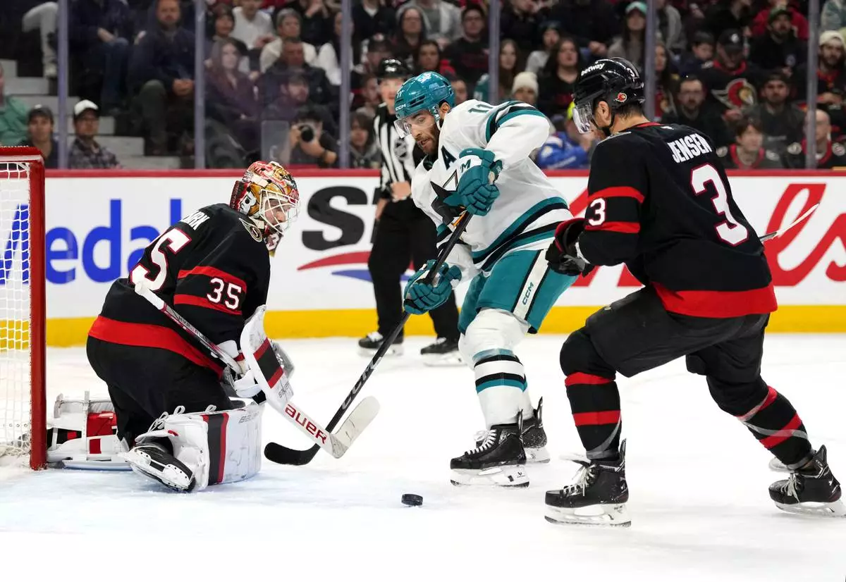 The Sharks controlled the game for long stretches but weren’t able to shut down the Senators when most needed.