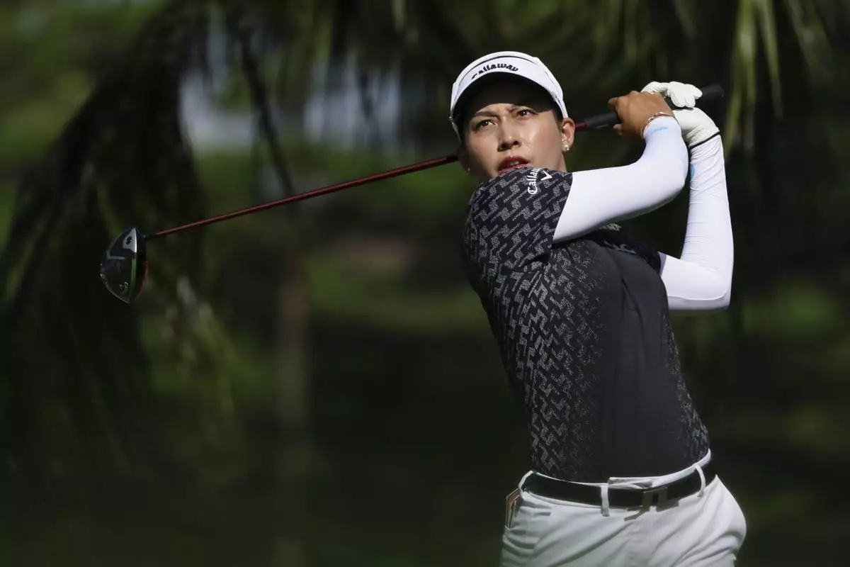 Ayaka Furue of Japan plays a shot during the round four of the HSBC Women's World Championship 2025 at Sentosa Golf Club in Singapore, Sunday, March 2, 2025. (AP Photo/Suhaimi Abdullah)