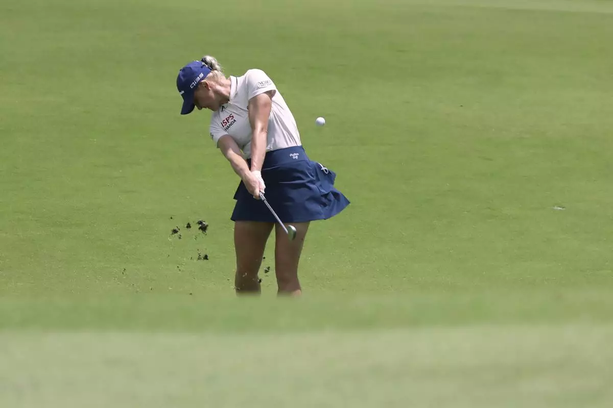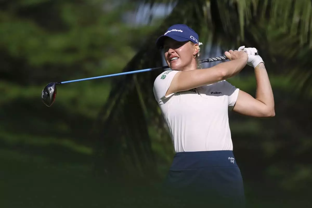 Charley Hull of England plays a shot during the round four of the HSBC Women's World Championship 2025 at Sentosa Golf Club in Singapore, Sunday, March 2, 2025. (AP Photo/Suhaimi Abdullah)