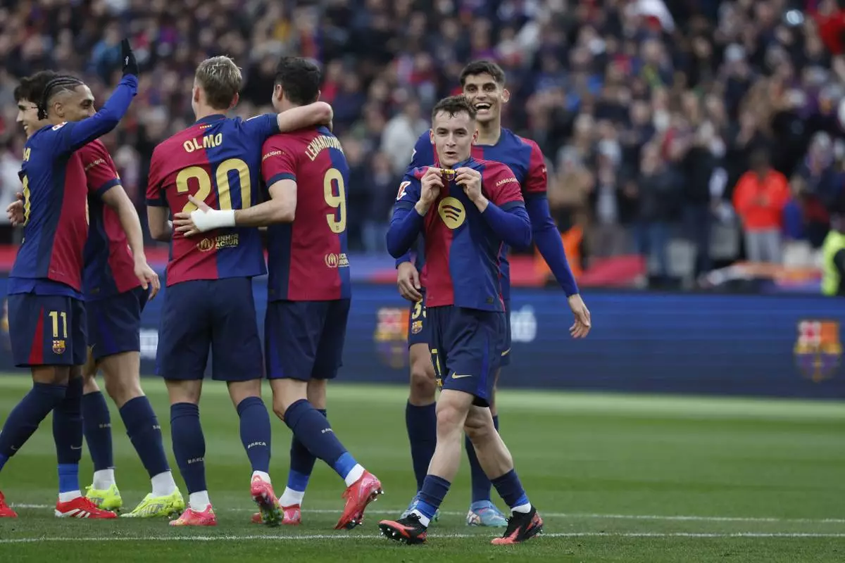 Barcelona was in control from the start at Montjuic stadium, with Martín scoring in the 25th and Casadó in the 29th. Araujo added to the lead in the 56th and Lewandowski closed the scoring in the 60th for his eighth goal in his last nine matches.