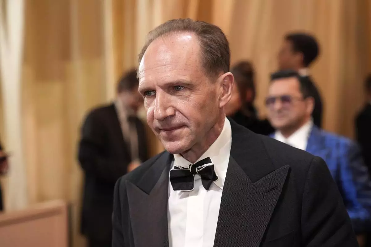 Ralph Fiennes arrives at the Oscars on Sunday, March 2, 2025, at the Dolby Theatre in Los Angeles. (AP Photo/John Locher)