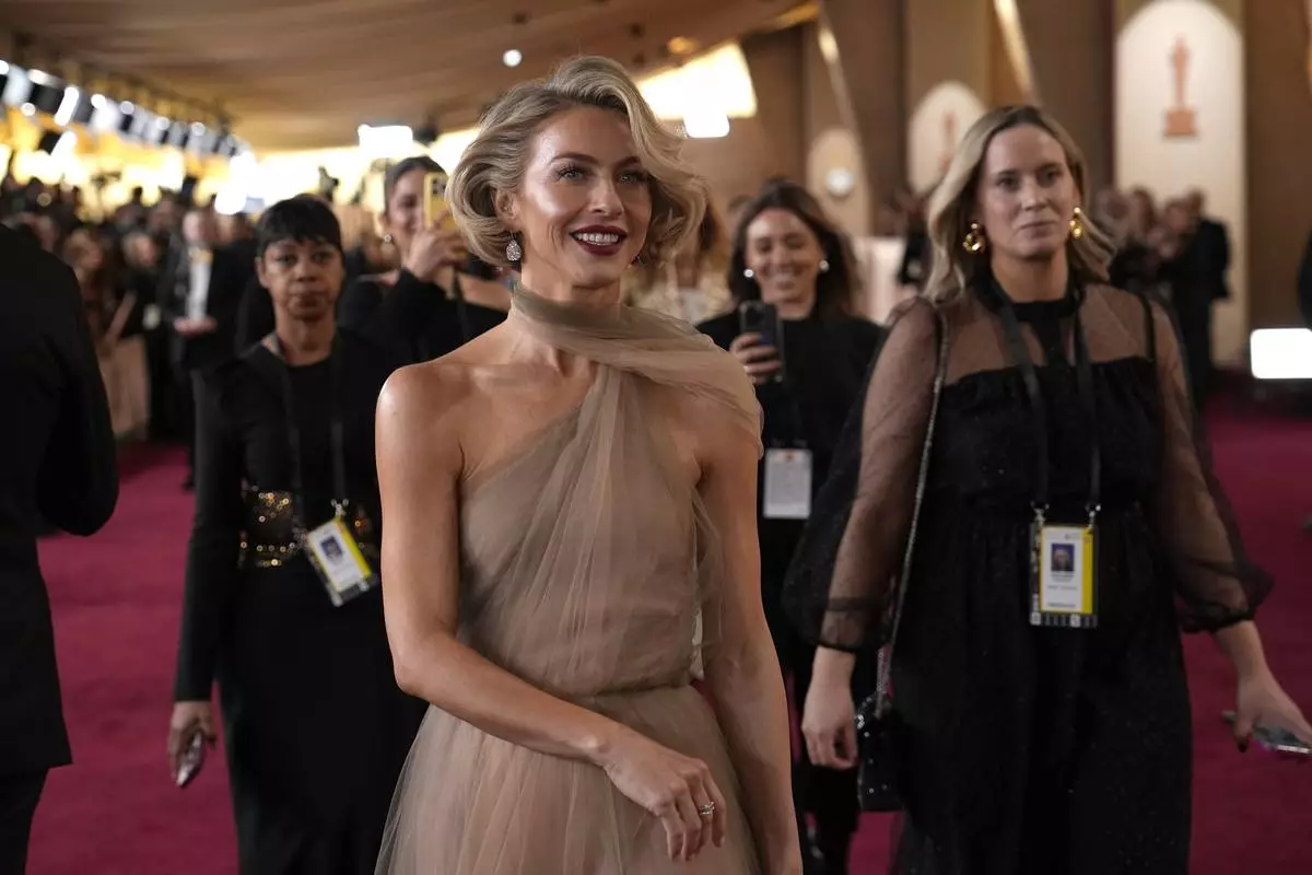 Julianne Hough arrives at the Oscars on Sunday, March 2, 2025, at the Dolby Theatre in Los Angeles. (AP Photo/John Locher)