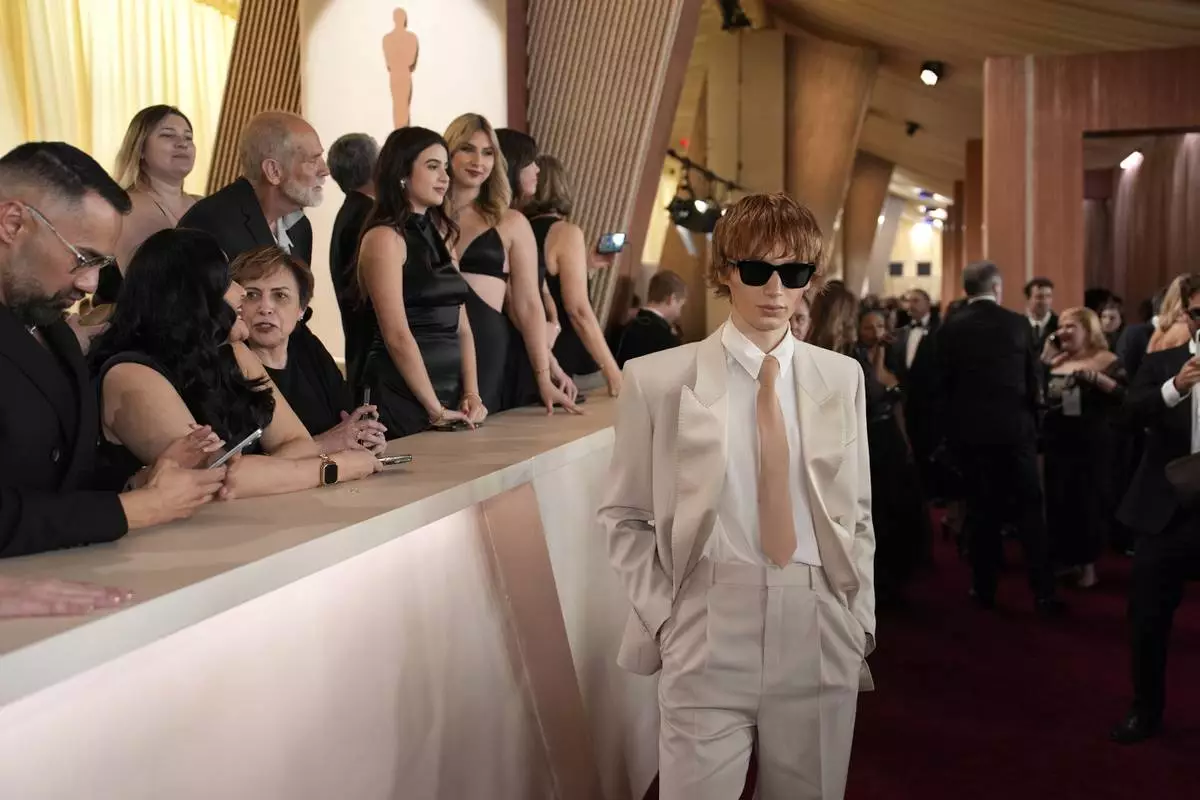 Mark Eydelshteyn arrives at the Oscars on Sunday, March 2, 2025, at the Dolby Theatre in Los Angeles. (AP Photo/John Locher)