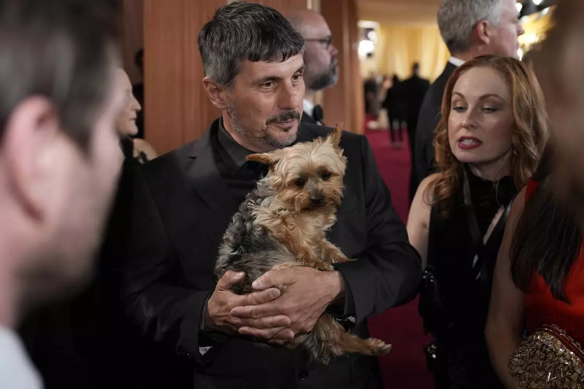 Slava Leontyev arrives at the Oscars on Sunday, March 2, 2025, at the Dolby Theatre in Los Angeles. (AP Photo/John Locher)