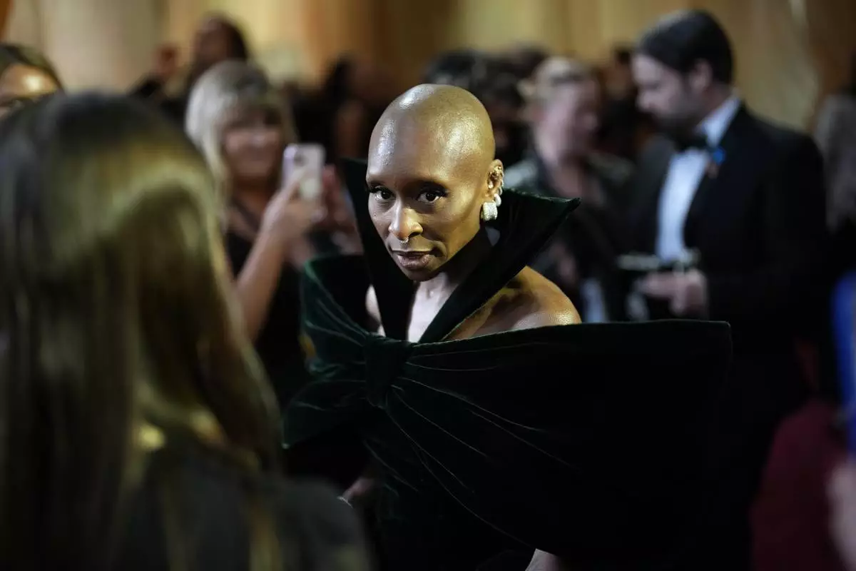 Cynthia Erivo arrives at the Oscars on Sunday, March 2, 2025, at the Dolby Theatre in Los Angeles. (AP Photo/John Locher)
