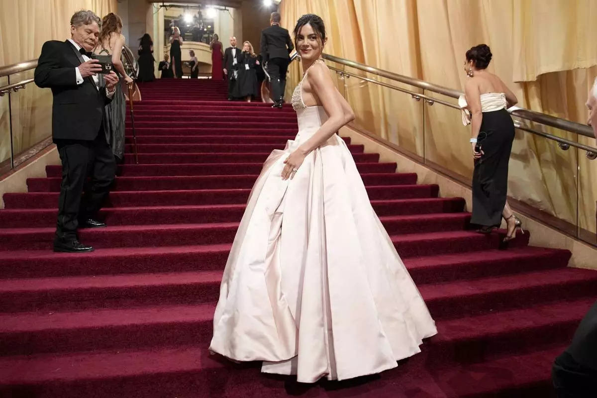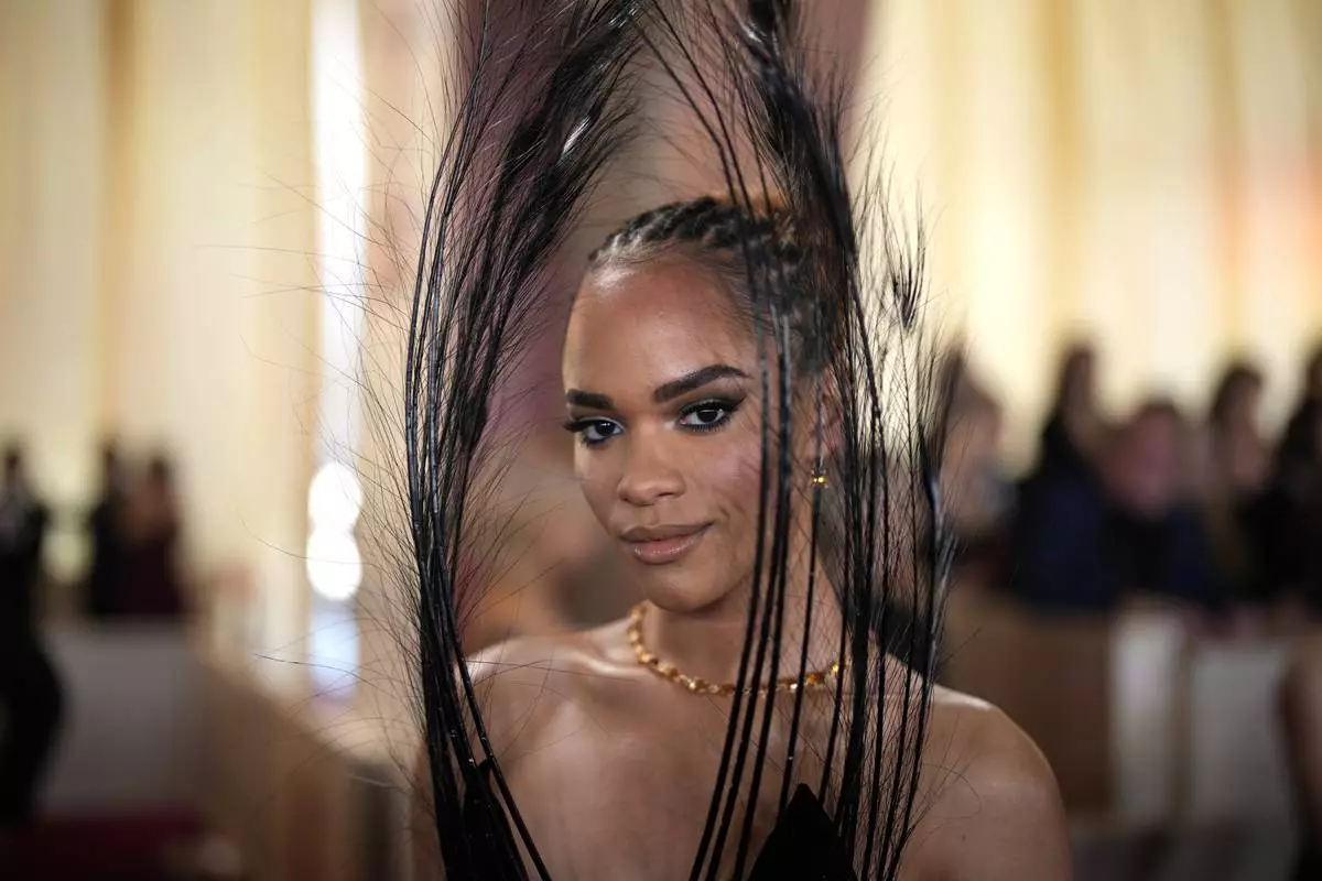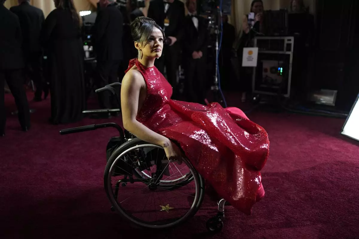 Yasmin Finney arrives at the Oscars on Sunday, March 2, 2025, at the Dolby Theatre in Los Angeles. (AP Photo/John Locher)