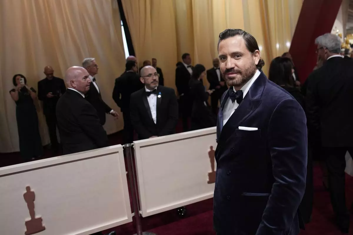 Edgar Ramírez arrives at the Oscars on Sunday, March 2, 2025, at the Dolby Theatre in Los Angeles. (AP Photo/John Locher)