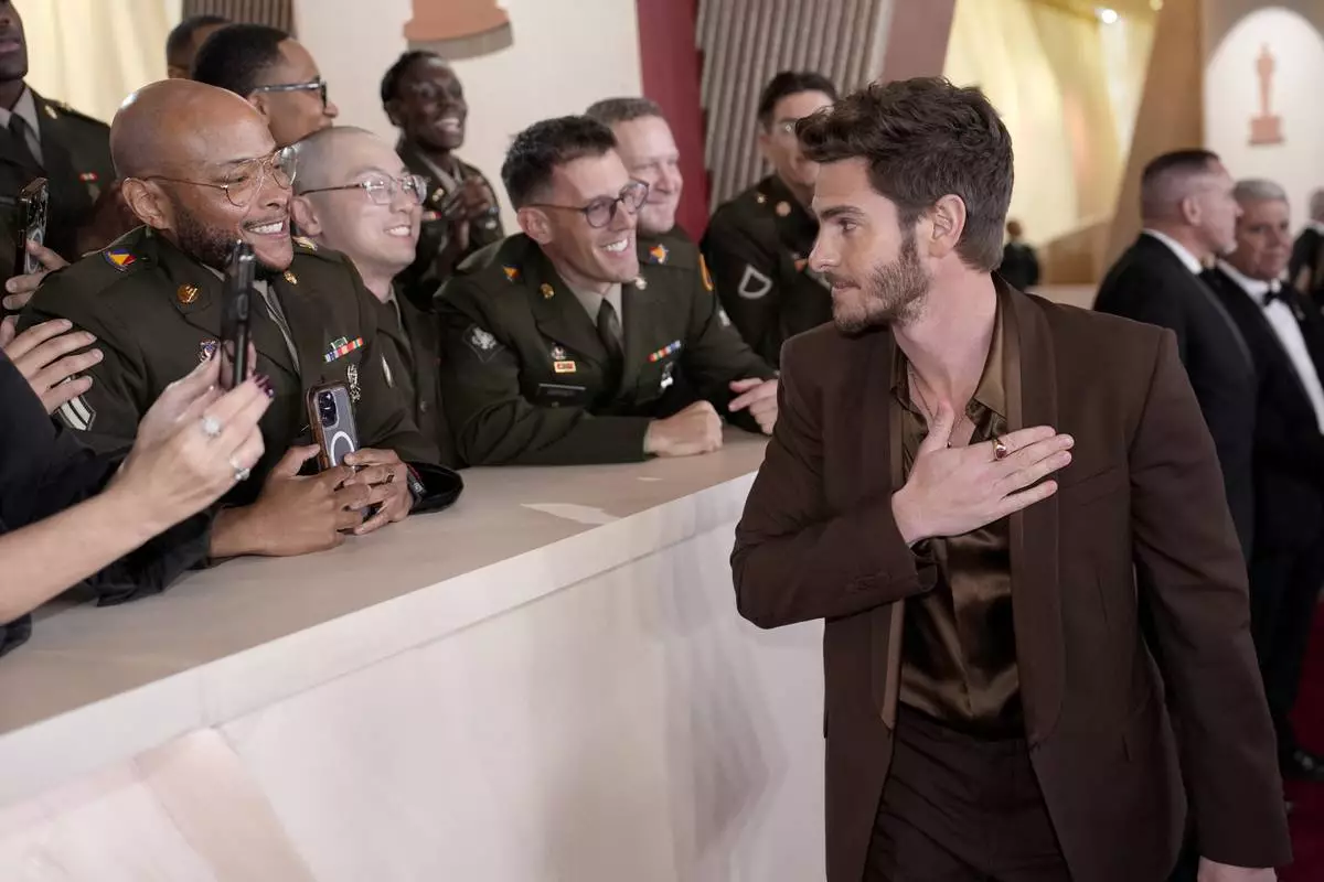 Andrew Garfield arrives at the Oscars on Sunday, March 2, 2025, at the Dolby Theatre in Los Angeles. (AP Photo/John Locher)
