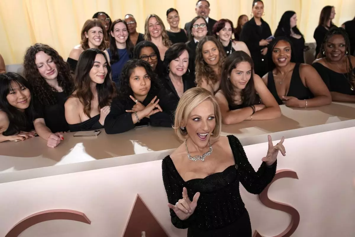 Marlee Matlin arrives at the Oscars on Sunday, March 2, 2025, at the Dolby Theatre in Los Angeles. (AP Photo/John Locher)