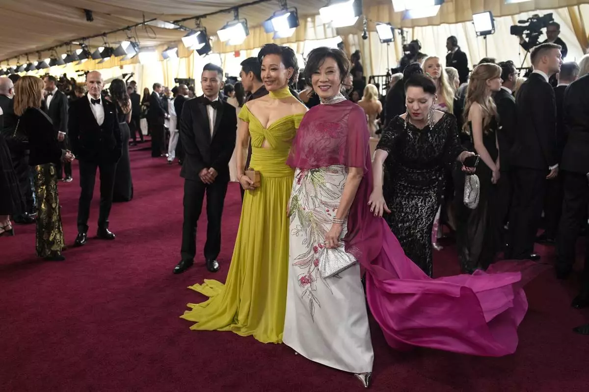 Janet Yang, left, and Joan Chen arrive at the Oscars on Sunday, March 2, 2025, at the Dolby Theatre in Los Angeles. (AP Photo/John Locher)