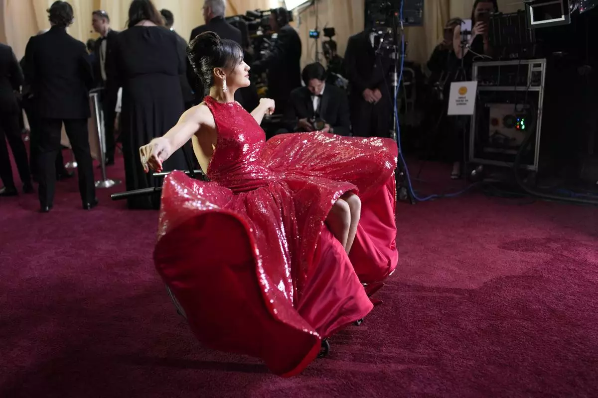 Rachel Zegler arrives at the Oscars on Sunday, March 2, 2025, at the Dolby Theatre in Los Angeles. (AP Photo/John Locher)