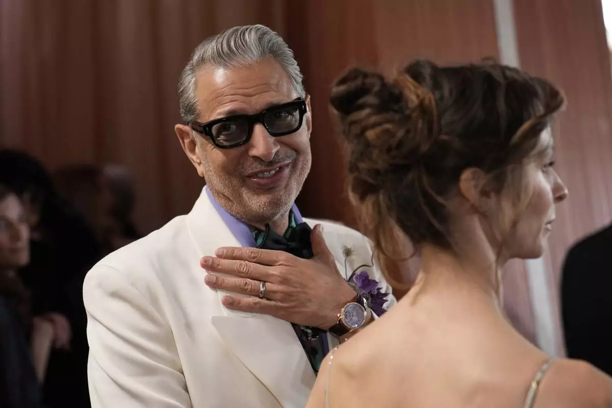Jeff Goldblum arrives at the Oscars on Sunday, March 2, 2025, at the Dolby Theatre in Los Angeles. (AP Photo/John Locher)
