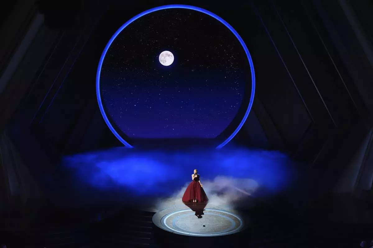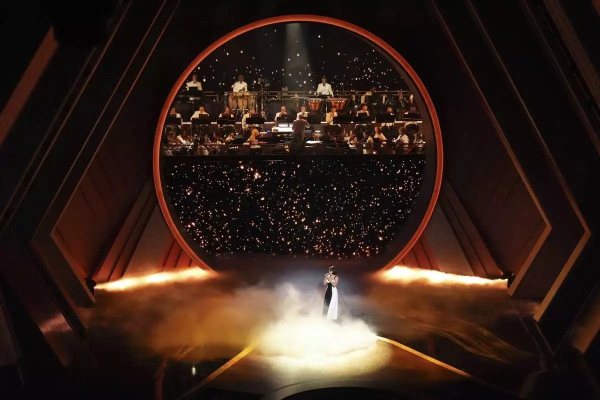 Lisa, center, sings "Live and Let Die" during the Oscars on Sunday, March 2, 2025, at the Dolby Theatre in Los Angeles. (AP Photo/Chris Pizzello)