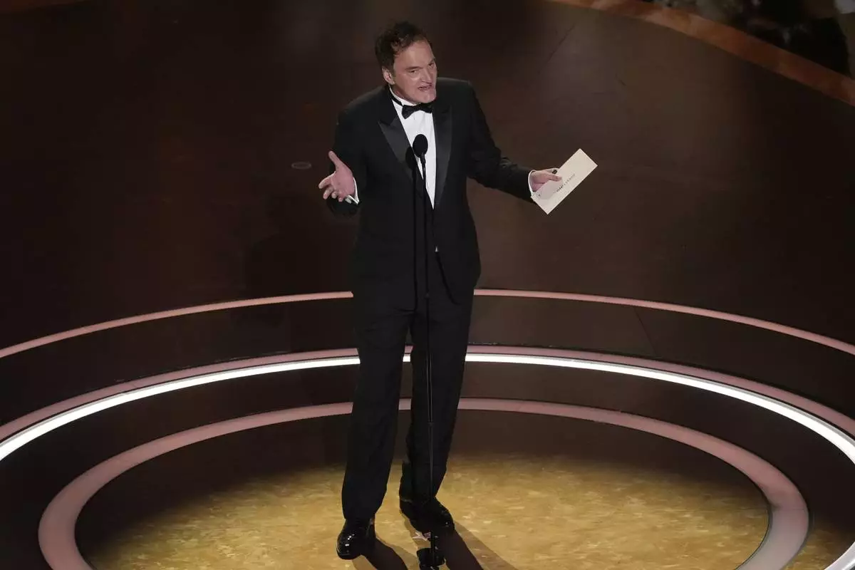 Quentin Tarantino presents the award for best director during the Oscars on Sunday, March 2, 2025, at the Dolby Theatre in Los Angeles. (AP Photo/Chris Pizzello)