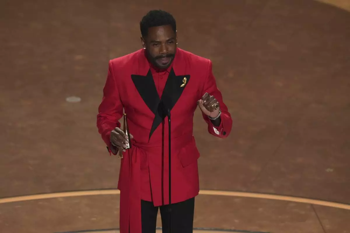 Colman Domingo raises a toast during the Oscars on Sunday, March 2, 2025, at the Dolby Theatre in Los Angeles. (AP Photo/Chris Pizzello)
