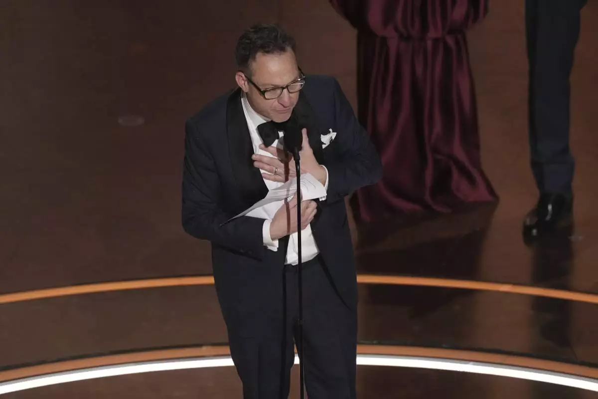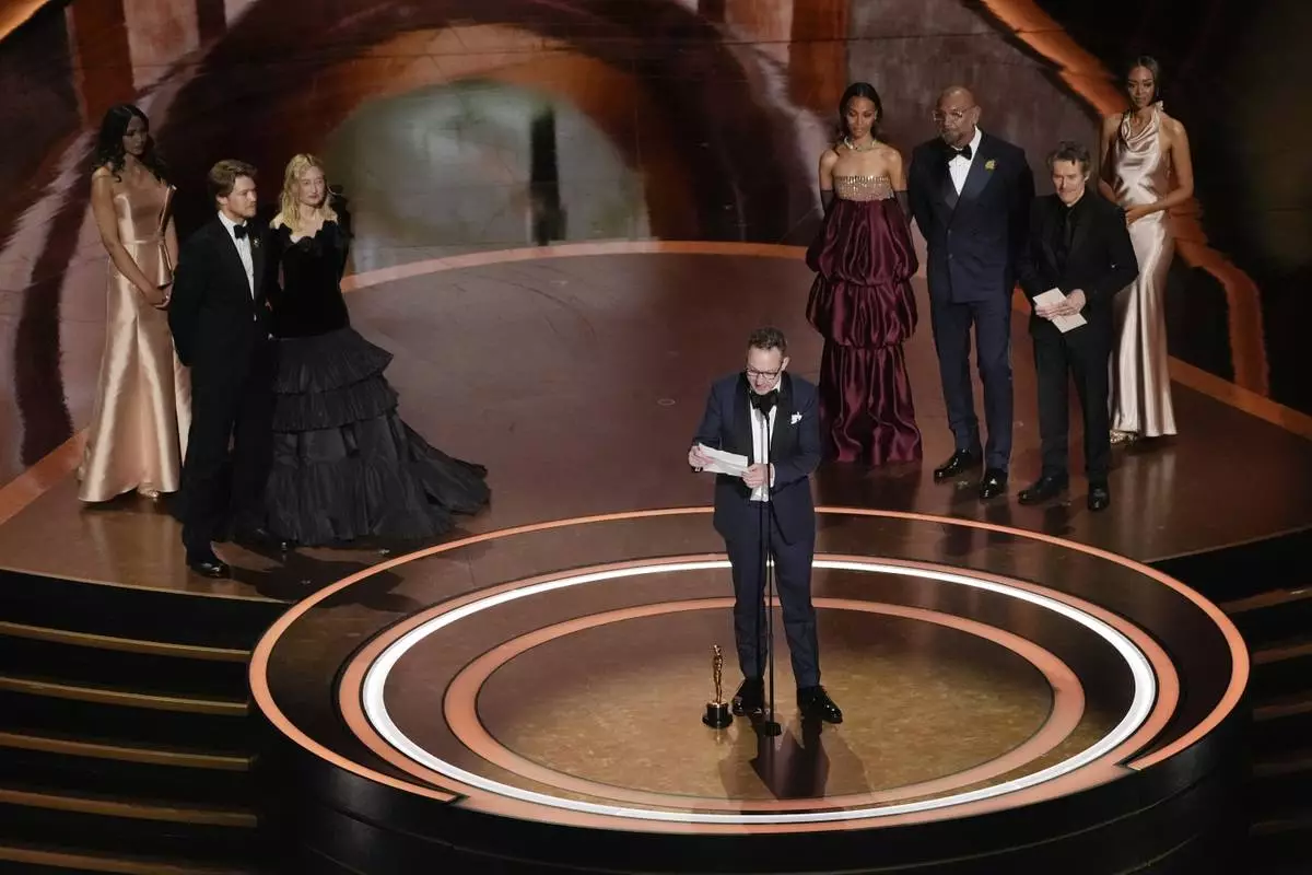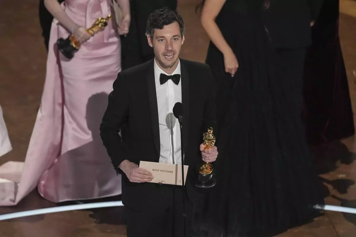 Alex Coco accepts the award for best picture for "Anora" during the Oscars on Sunday, March 2, 2025, at the Dolby Theatre in Los Angeles. (AP Photo/Chris Pizzello)