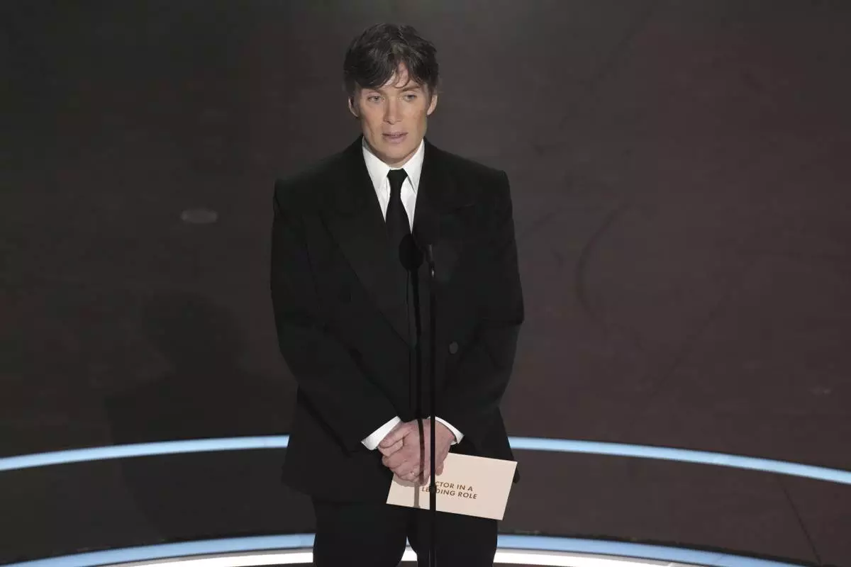 Cillian Murphy presents the award for best performance by an actor in a leading role during the Oscars on Sunday, March 2, 2025, at the Dolby Theatre in Los Angeles. (AP Photo/Chris Pizzello)
