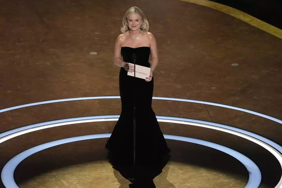 Amy Poehler presents the award for best original screenplay during the Oscars on Sunday, March 2, 2025, at the Dolby Theatre in Los Angeles. (AP Photo/Chris Pizzello)
