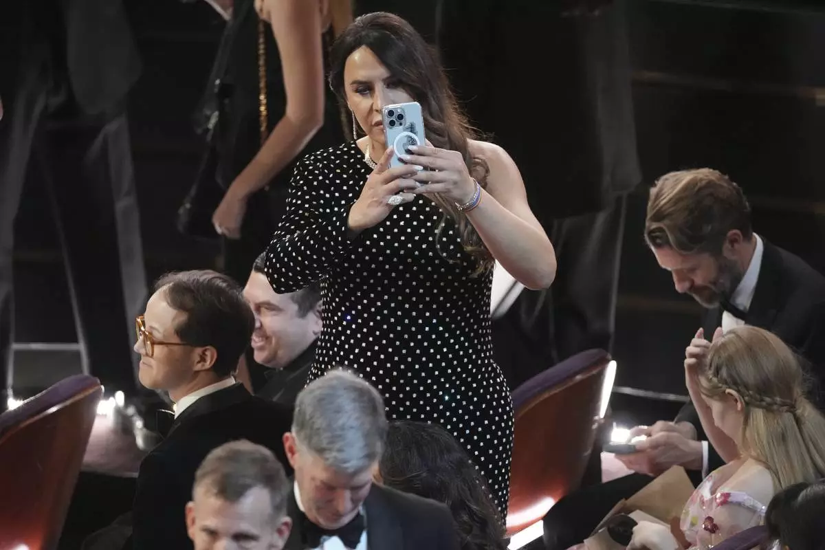 Karla Sofía Gascón in the audience during the Oscars on Sunday, March 2, 2025, at the Dolby Theatre in Los Angeles. (AP Photo/Chris Pizzello)